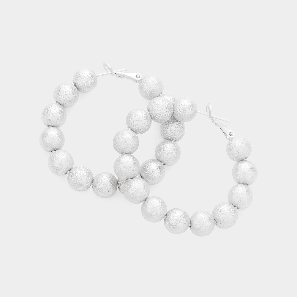 1.75 Inch Frosted Metal Ball Hoop Earrings