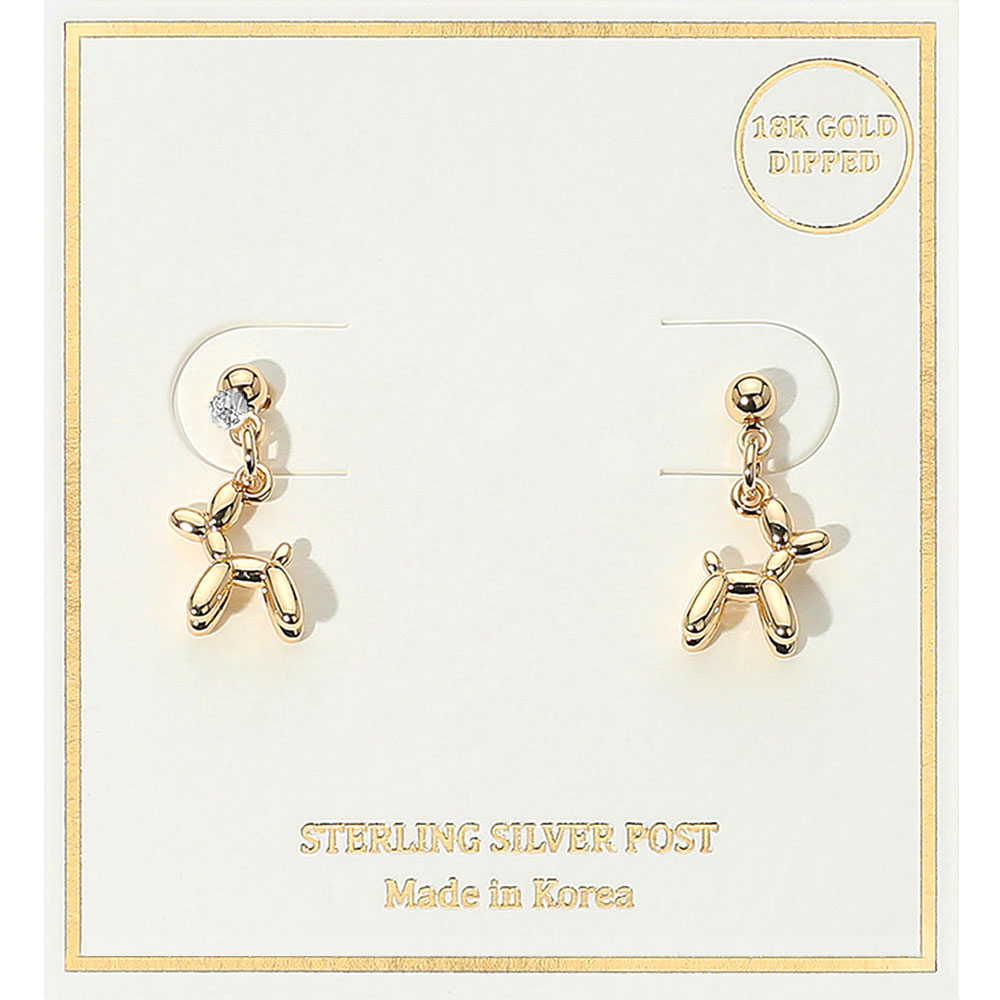 Details • Size : 0.3" X 0.7" • Whimsical drop earrings featuring playful balloon dog charms. A fun and unique accessory that adds a touch of charm and personality to any look, perfect for everyday wear or quirky style statements. • Gold Dipped • Lead and Nickel Compliant • Made In Korea • Sterling Silver Post
