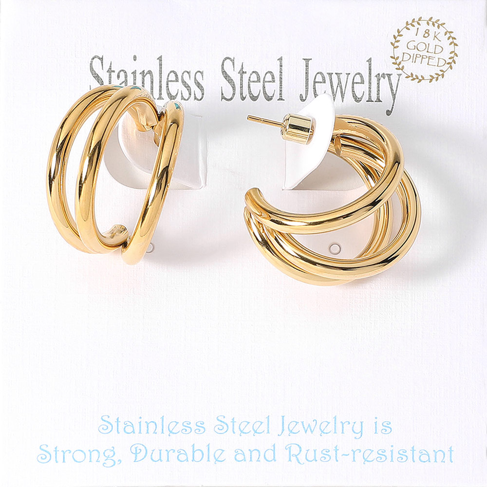 18K Gold Dipped Stainless Steel Split Hoop Earrings