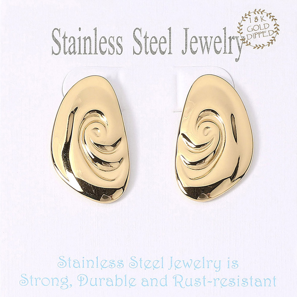 18K Gold Dipped Stainless Steel Swirl Plate Earrings