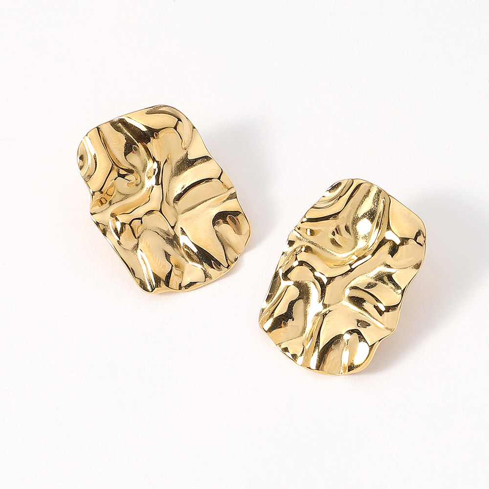 18K Gold Dipped Stainless Steel Textured Rectangle Plate Earrings
