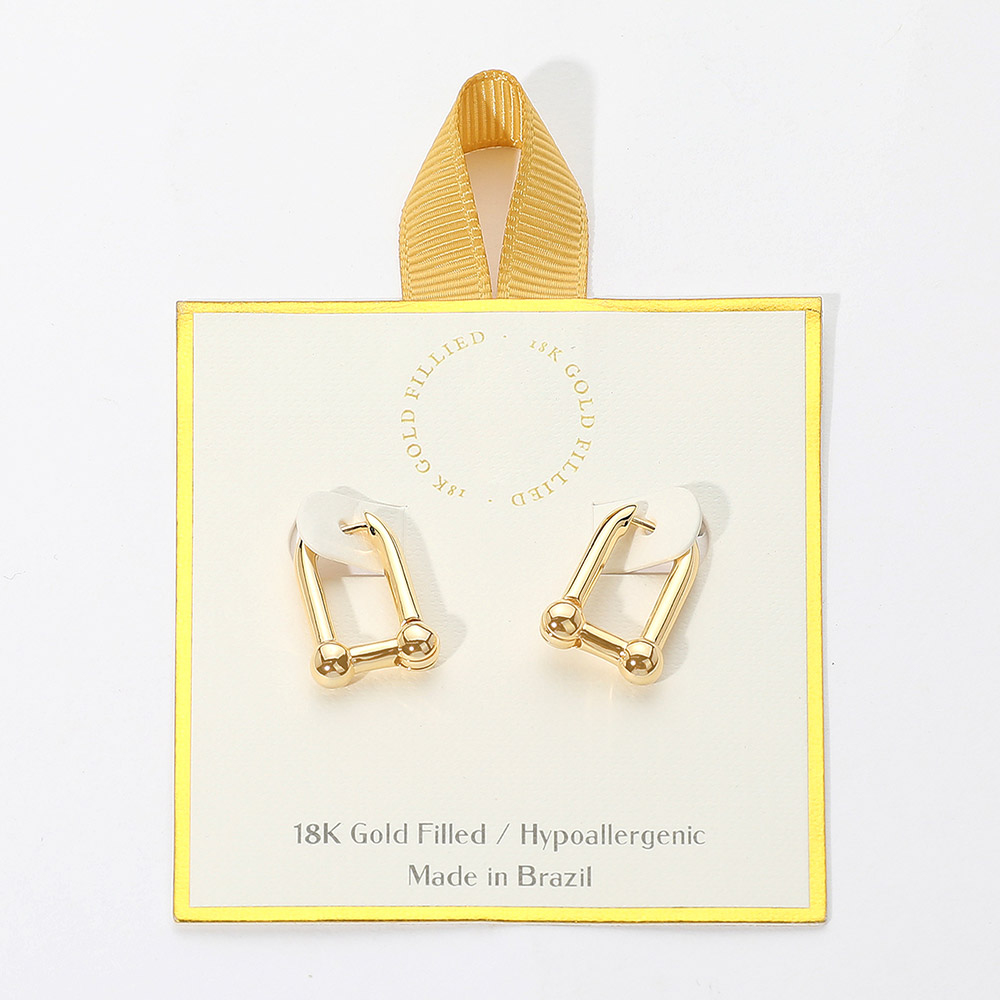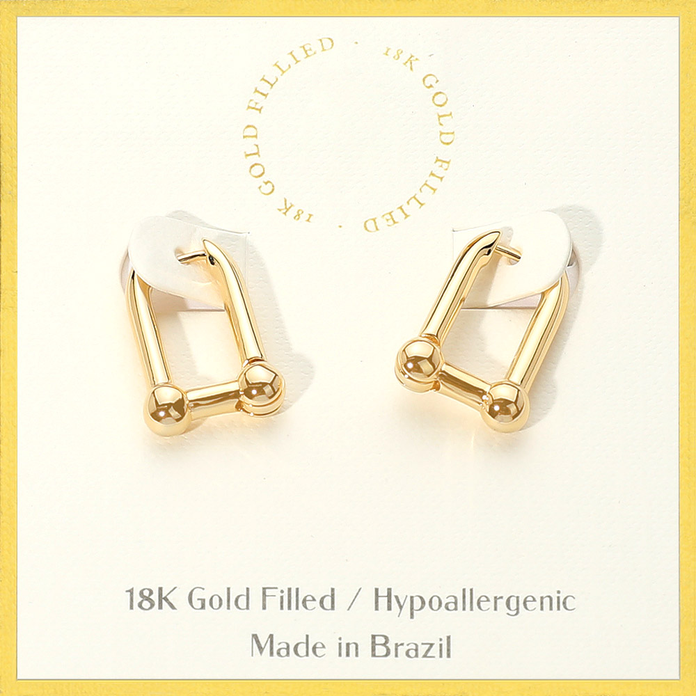 Details • Size : 0.6" X 0.8" • Huggie Back • Make a modern statement with these 18K gold filled geometric hoop earrings. Designed with a unique angular silhouette and smooth polished finish, they are hypoallergenic and ideal for both bold and minimalist looks. • Gold Filled • Hypoallergenic • Lead and Nickel Compliant • Made In Brazil