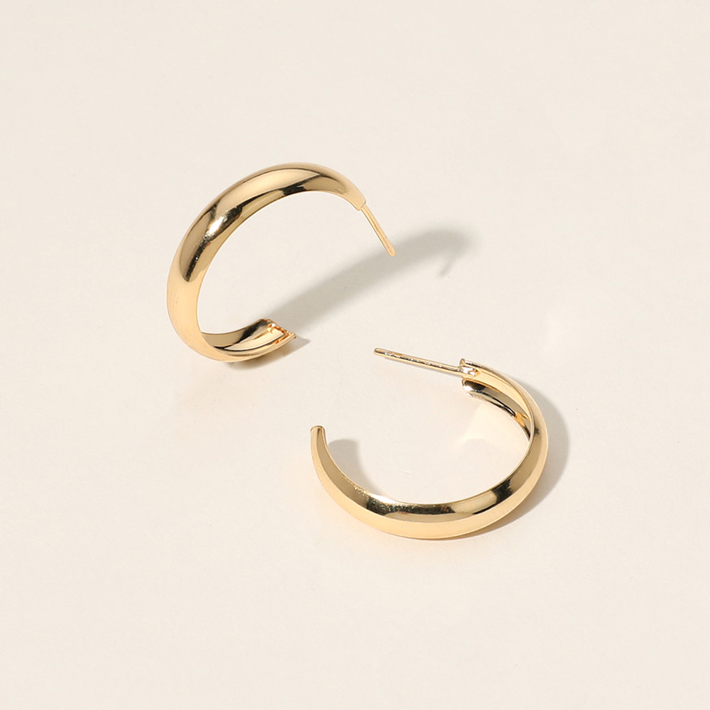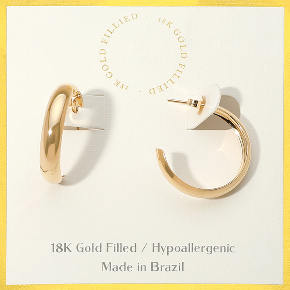 Details • Size : 0.9" X 1" X 0.2" • Post Back • Sleek and sculptural, these minimalist open hoop earrings feature a refined curve with a high-shine finish. Their modern open-ended design makes them a versatile accessory, ideal for effortless day-to-night styling and everyday elegance. • Lead and Nickel Compliant • Hypoallergenic • Gold Filled • Made In Brazil