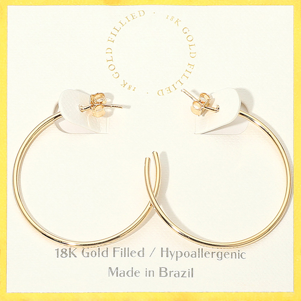 Details • Size : 1.4" X 1.4" • Post Back • Water Resistant and Tarnish Free • These slim open hoop earrings showcase a lightweight, minimalist design perfect for elevating any outfit. Comfortable and hypoallergenic, they are ideal for daily wear or special occasions. Their timeless silhouette makes them a versatile addition to any modern jewelry collection. • Gold Filled • Hypoallergenic • Lead and Nickel Compliant • Made In Brazil