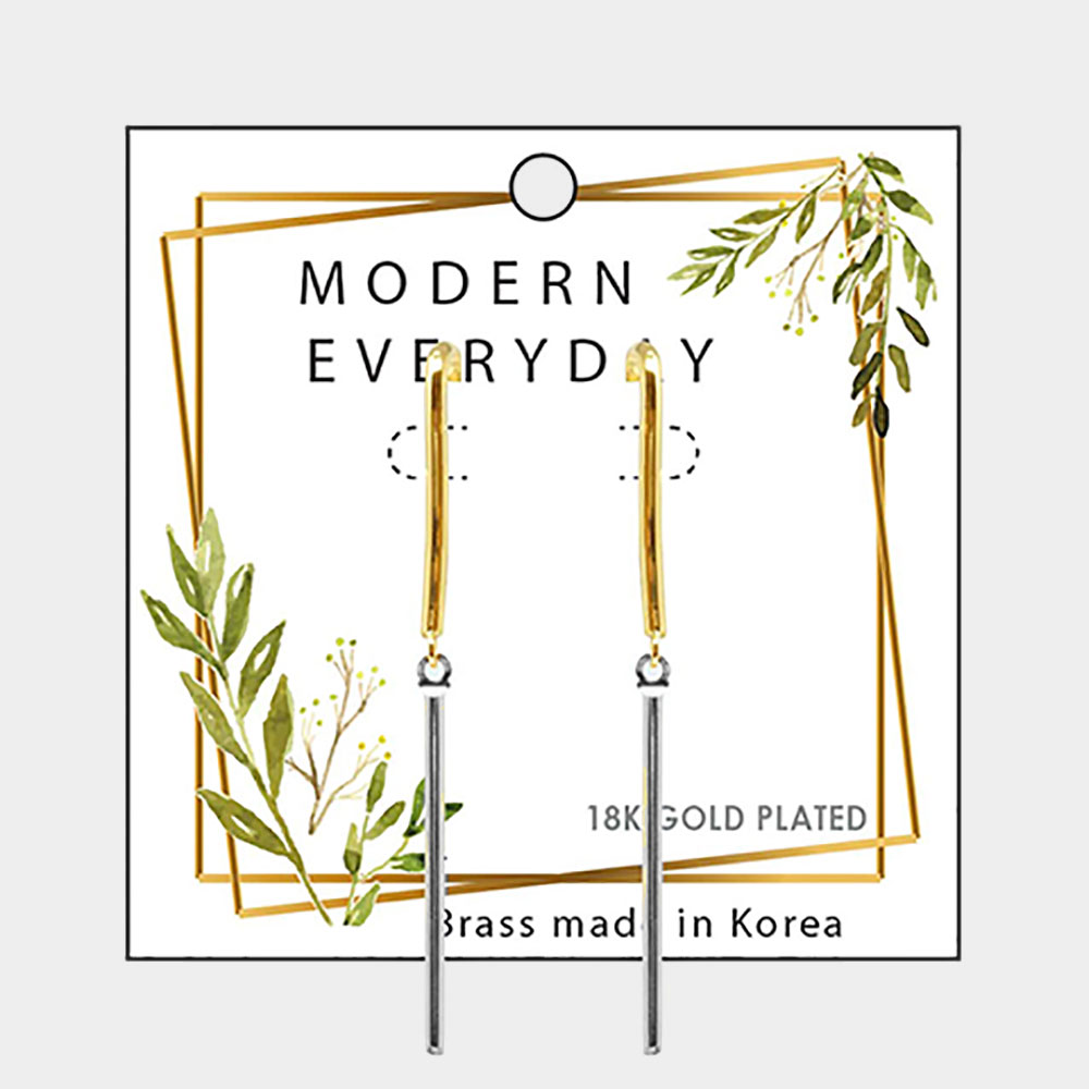 18K Gold Plated Brass Metal Bar Dangle Earrings
