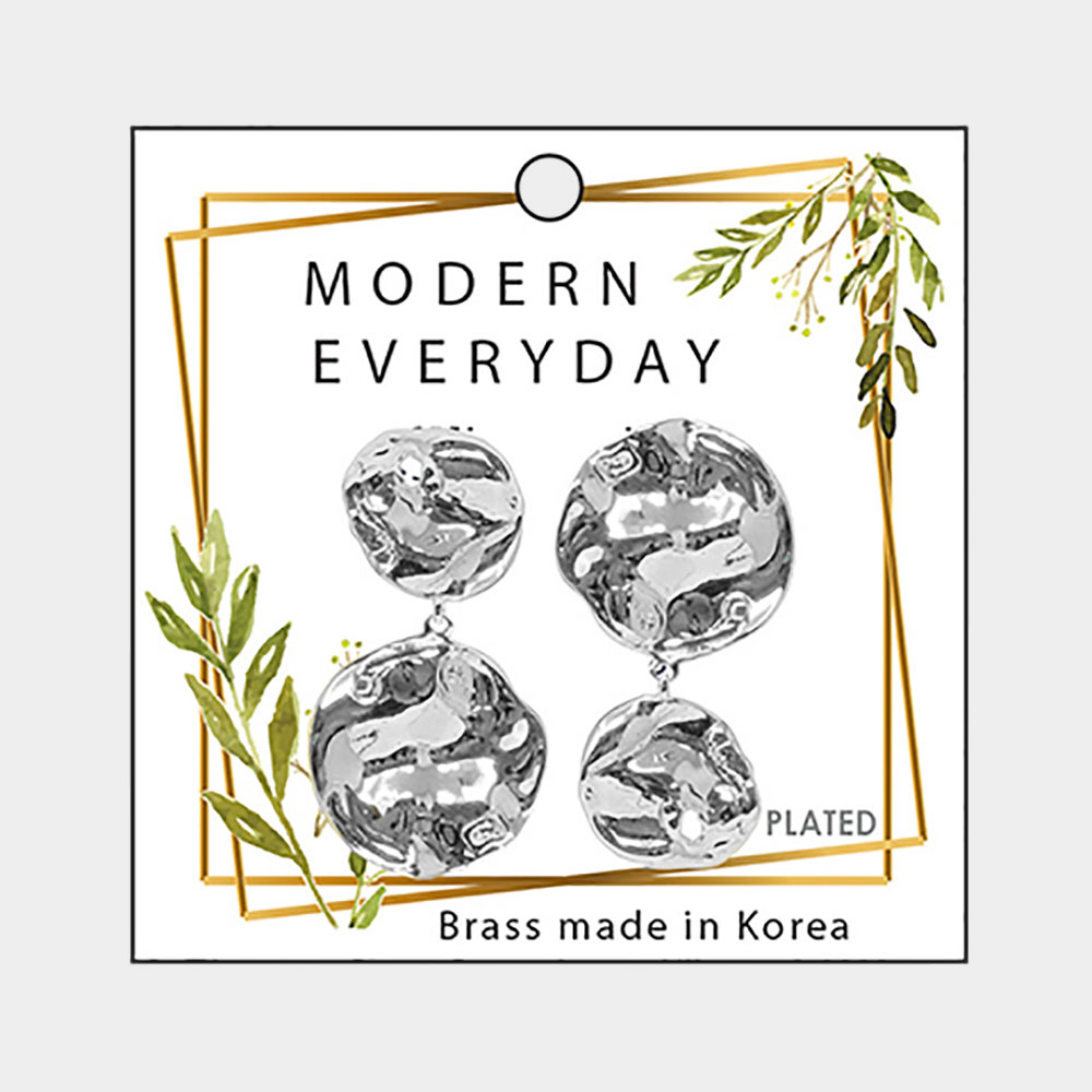 18K White Gold Plated Brass Mismatched Crushed Metal Earrings