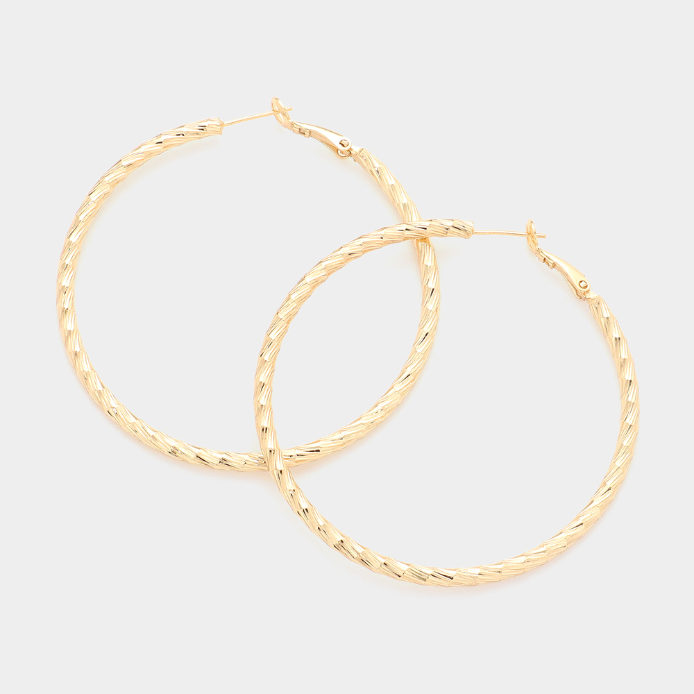 2.3 Inch Textured Brass Metal Hoop Earrings