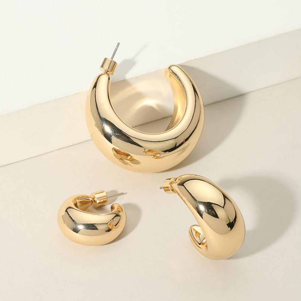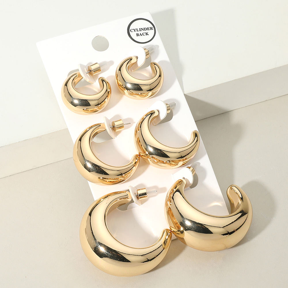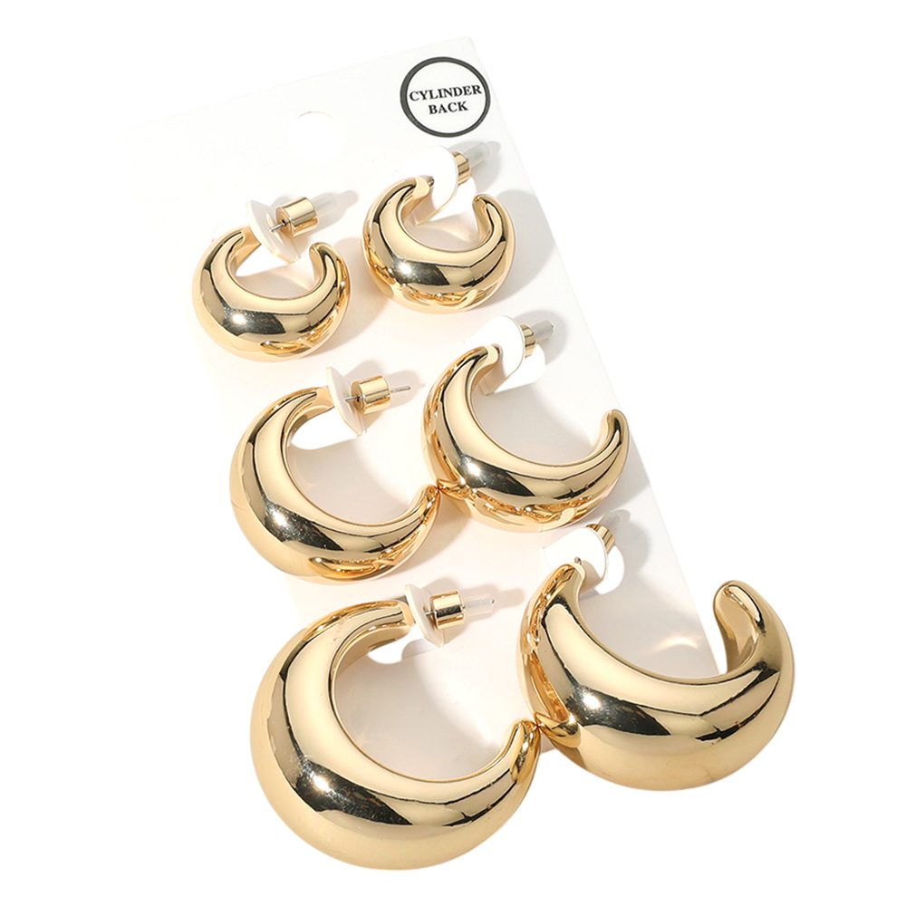 Details • Size : 0.8" L - 1.6" L • Cylinder Back • Elegant dome-style hoop earrings in a set of three graduated sizes. Designed for versatility and everyday sophistication, these hoops add volume and shine to your look, whether worn together or separately. • Lead and Nickel Compliant