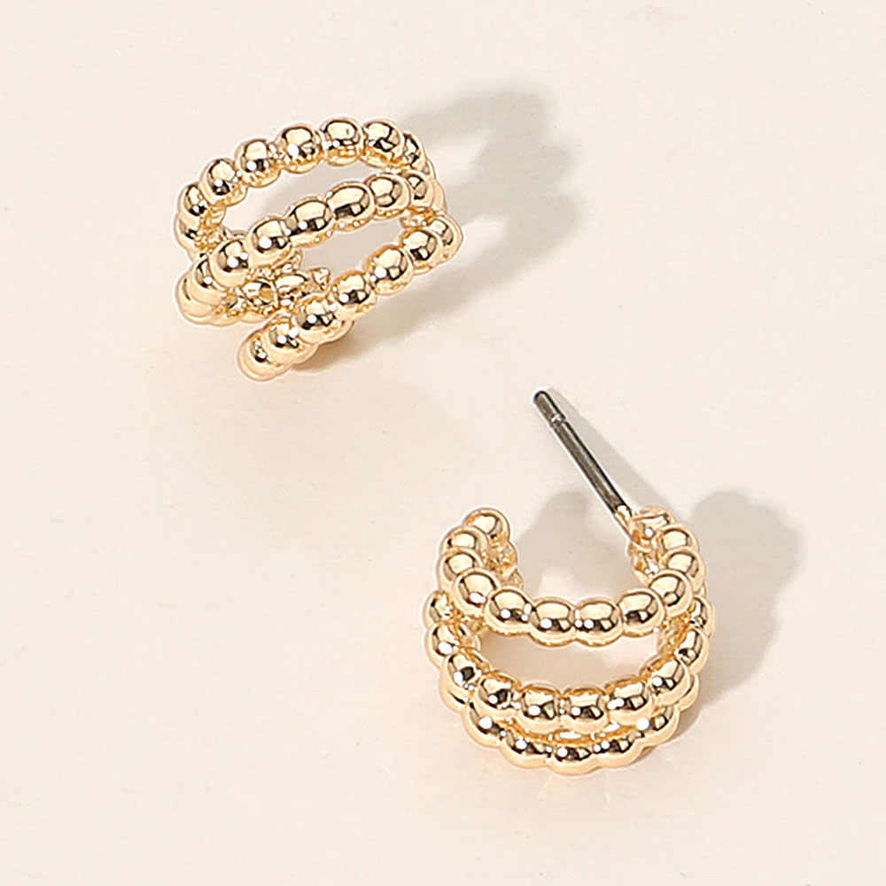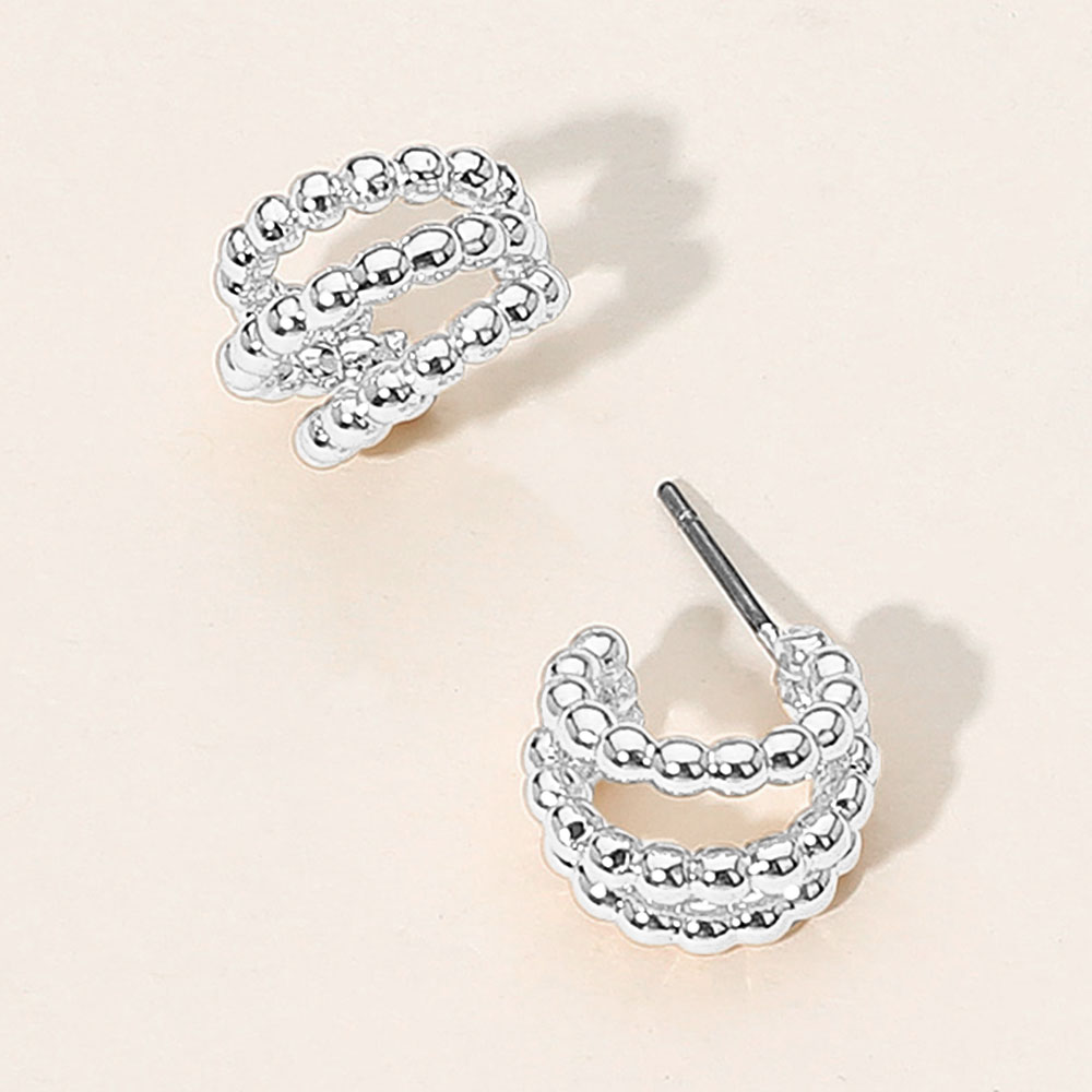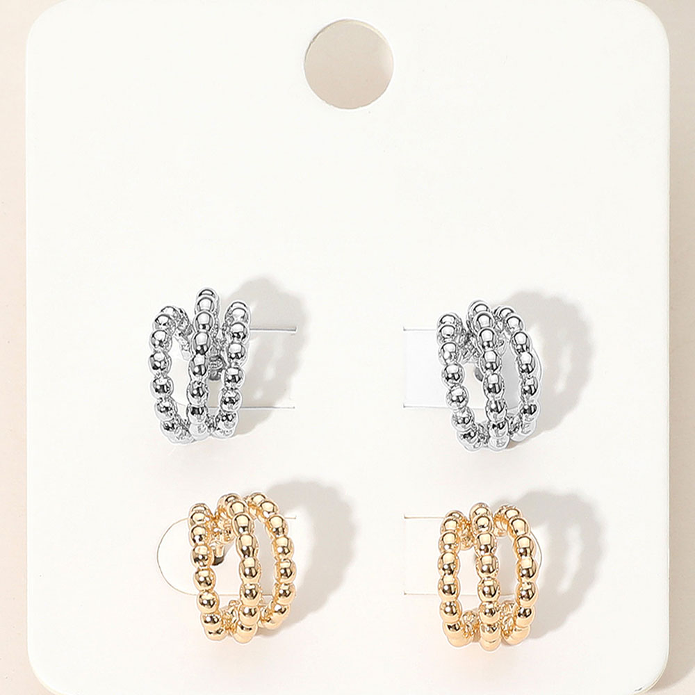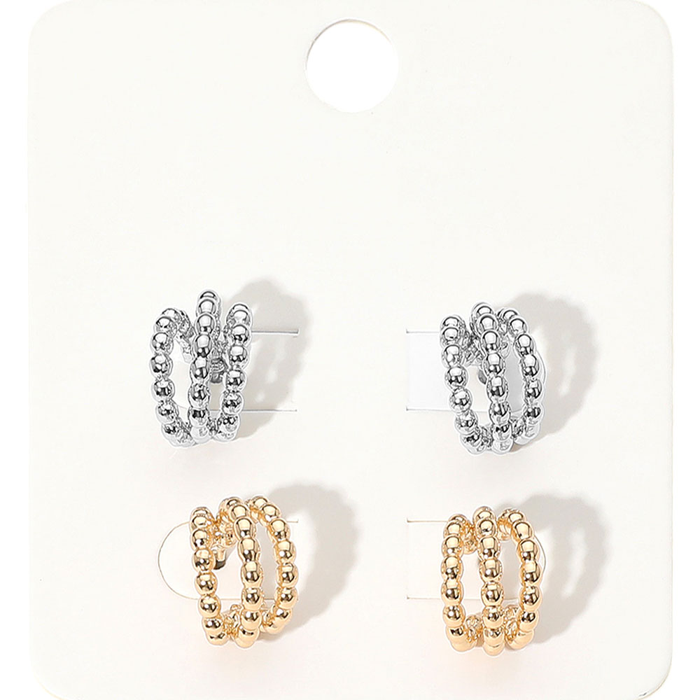 Details • Size : 0.4" X 0.4" X 0.4" • Post Back • Chic beaded double hoop earrings in a convenient two-pair set. Featuring textured spherical detailing, these earrings add a bold, modern accent to casual or dressy outfits, offering versatile style all day. • Lead and Nickel Compliant