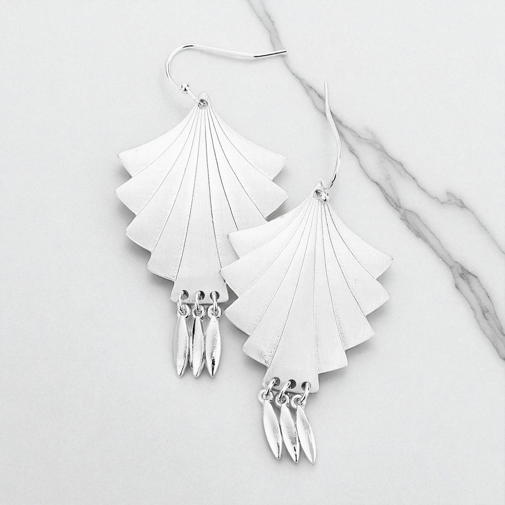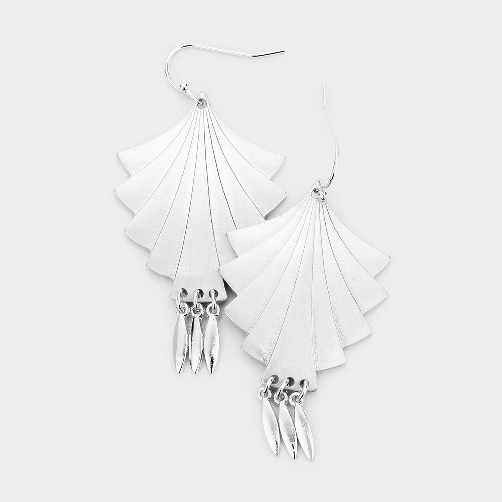 Iridescent Heart Stone Centered Ornate Cross Dangle Earrings