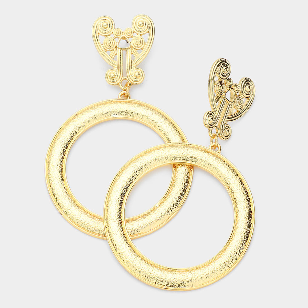 Brass Metal Open Metal Link Double Layered Y Necklace