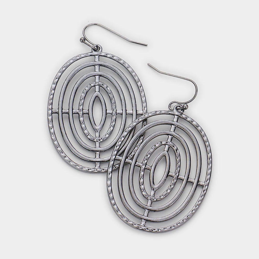 Sterling Silver Post Rhinestone Studded Oval Hoop Earrings