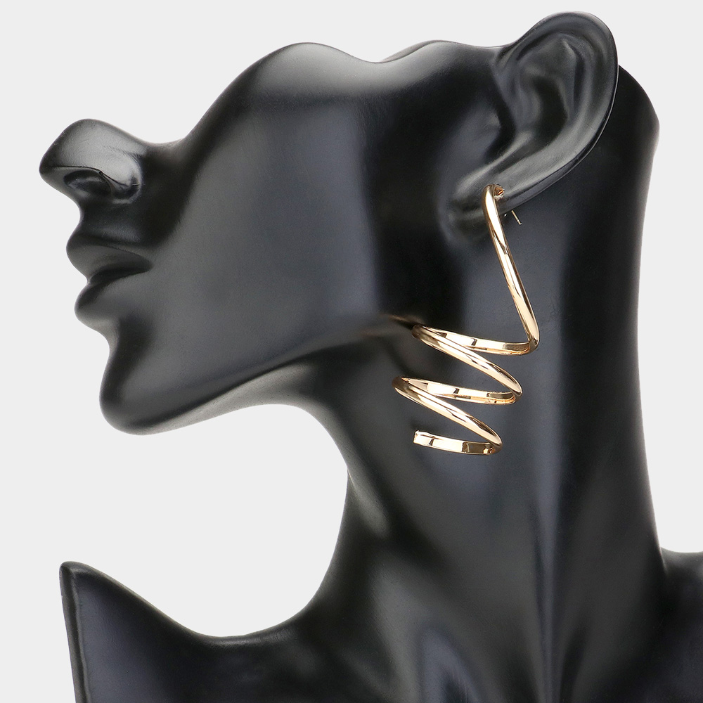 Brass Metal CZ Stone Pointed Rocket Stud Earrings
