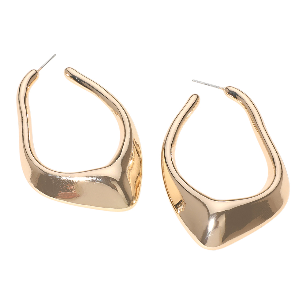 Details • Size : 1.6" X 2.75" • Post Back • Bold and contemporary, these geometric twist hoop earrings feature a sculptural, fluid shape for a sleek and artistic finish. Designed to elevate any look with a refined yet edgy flair, perfect for standout accessorizing. • Lead and Nickel Compliant