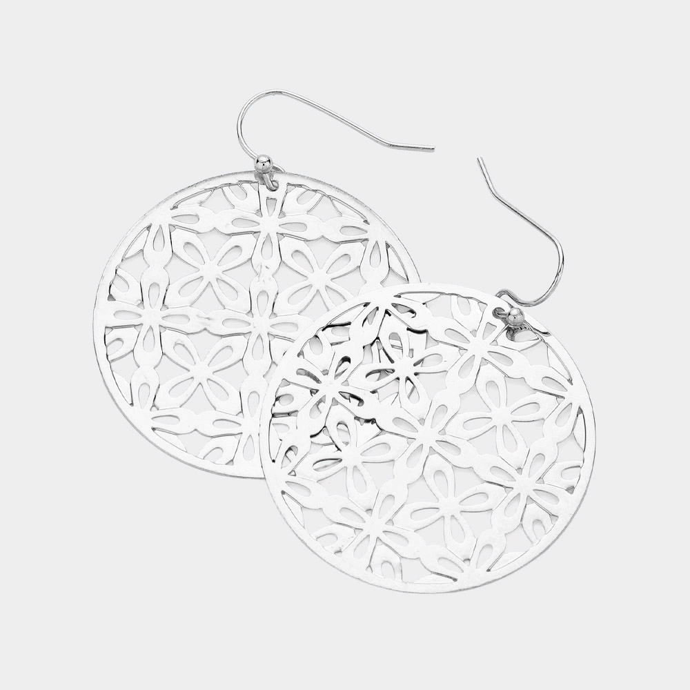 Flower Leaf Metal Filigree Round Dangle Earrings