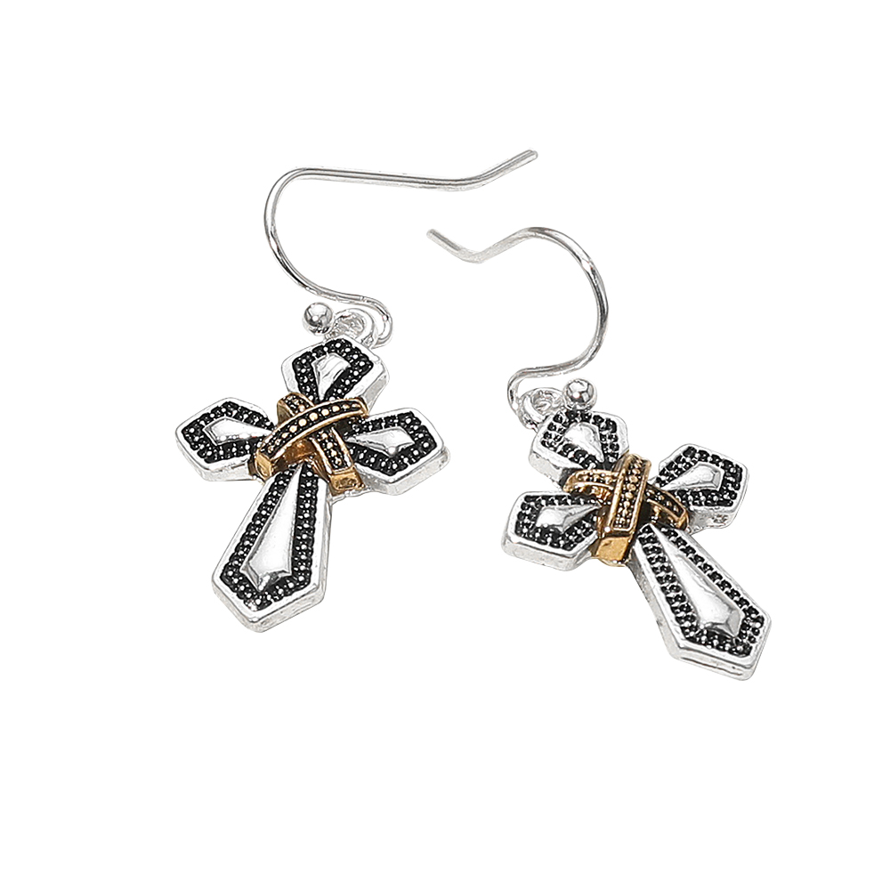 Details • Size : 0.6" X 1.3" • Fish Hook Back • Complete your look with these antique-style cross drop earrings featuring intricate vintage detailing. Lightweight and versatile, they bring a touch of faith-inspired elegance and timeless charm, perfect for daily wear or adding meaningful style to special occasion outfits. • Lead and Nickel Compliant