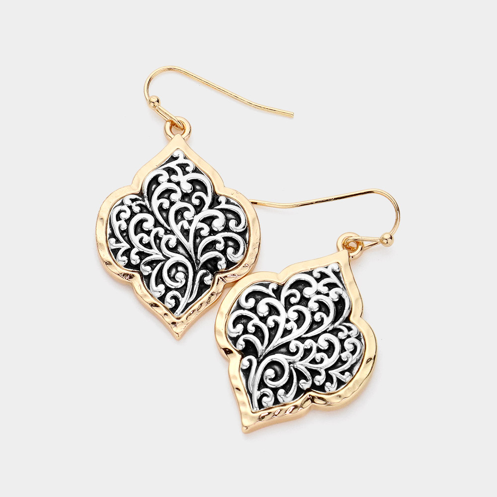 Antique Metal Filigree Abstract Shape Dangle Earrings