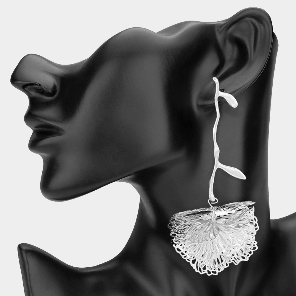 Artistic Metal Flower Stem Drop Statement Earrings