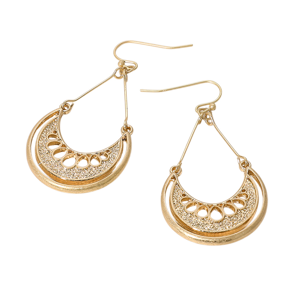 Boho Metal Crescent Cutout Drop Dangle Earrings