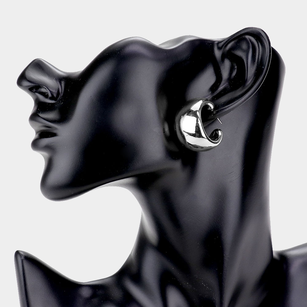 18K Gold Dipped Stainless Steel 1.5 Inch Textured Metal Hoop Pin Catch Earrings