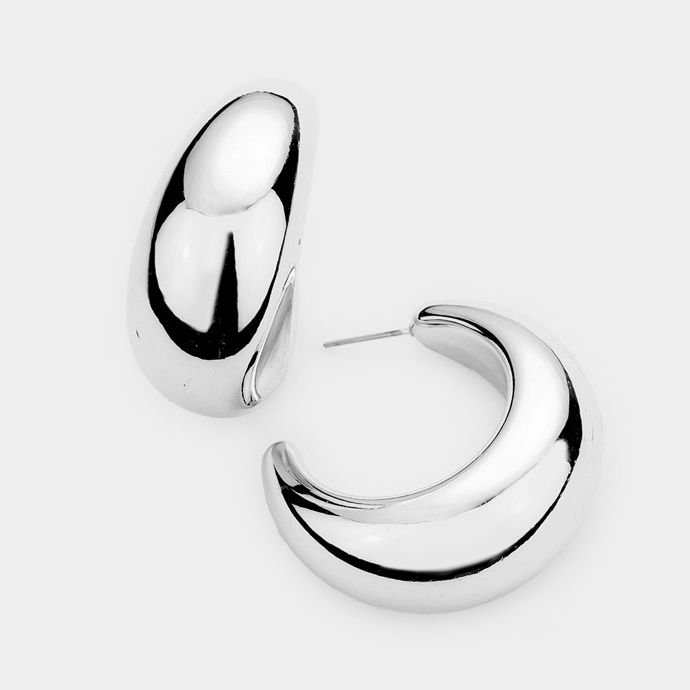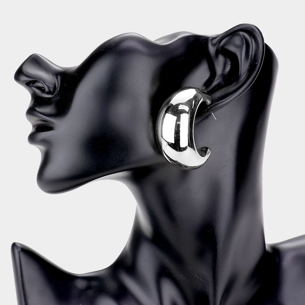 Stainless Steel Textured Hoop Pin Catch Earrings