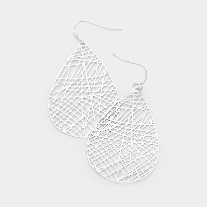Brass Matte Metal Filigree Teardrop Dangle Earrings