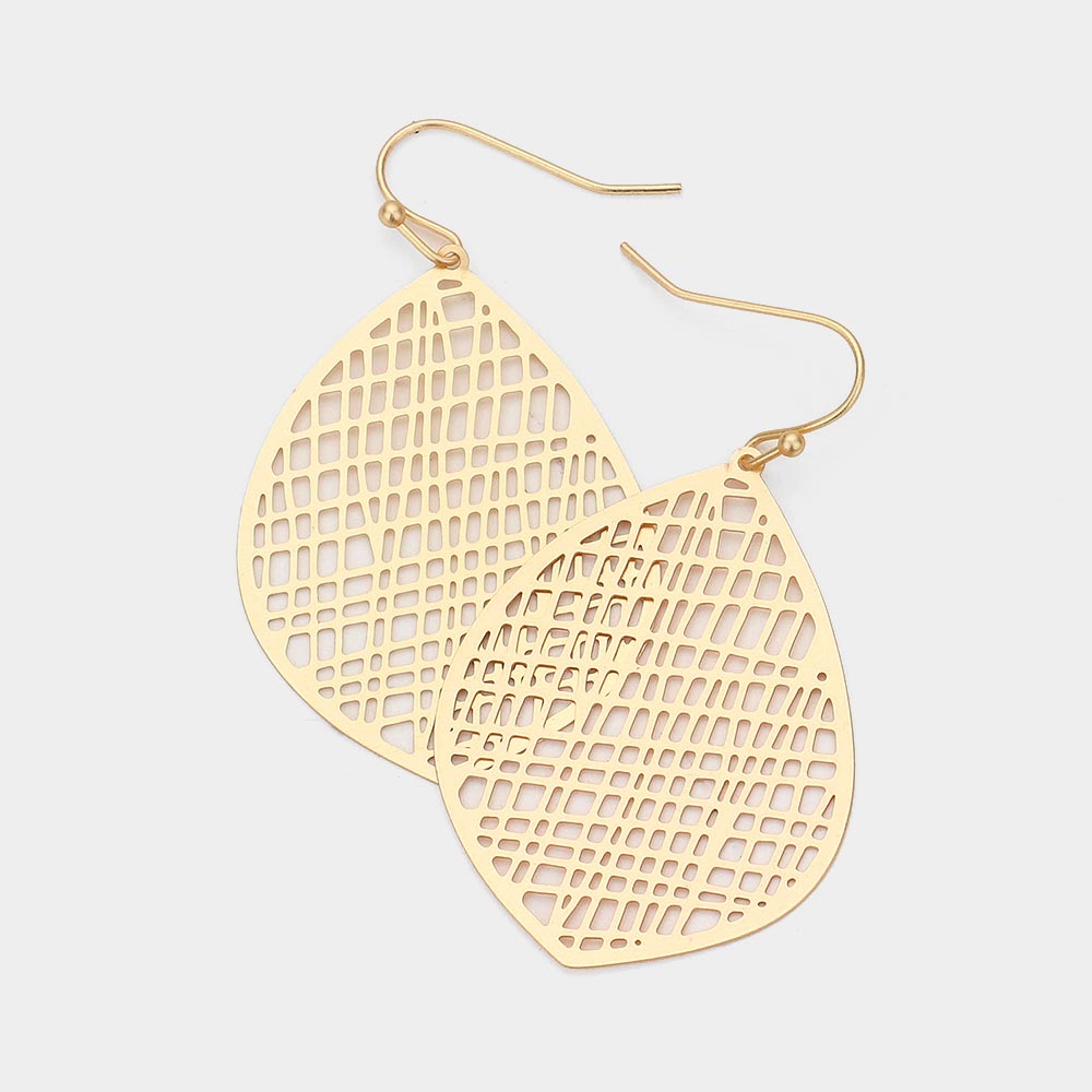Metal Filigree Leaf Dangle Earrings
