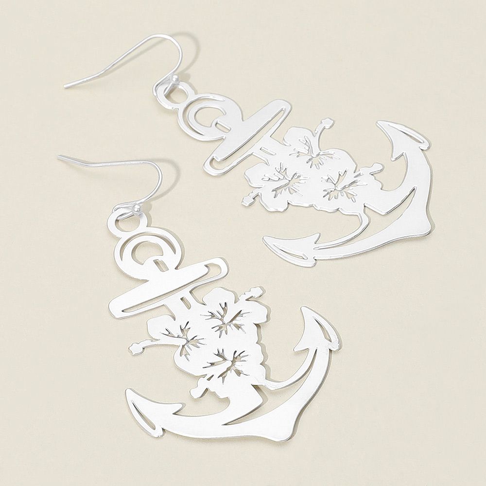 Brass Metal Cutout Anchor Dangle Earrings