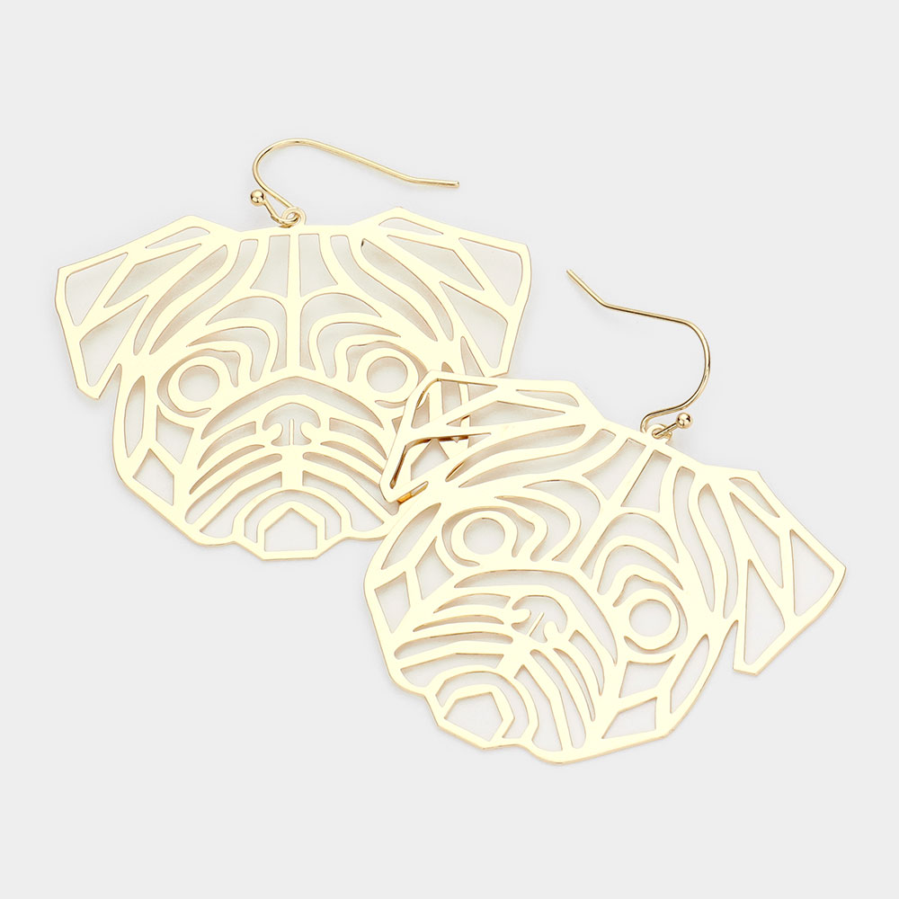 Brass Metal Cutout Bulldog Dangle Earrings