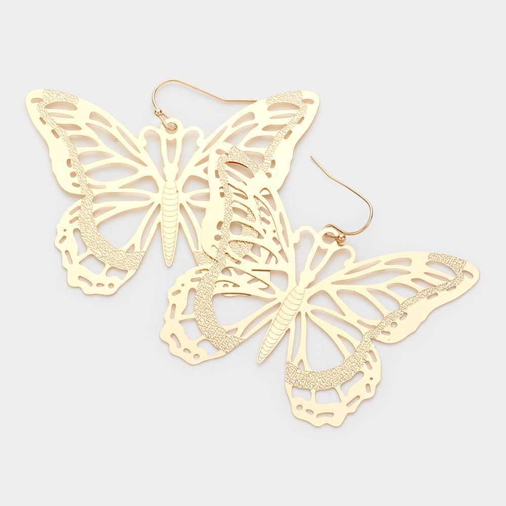 Brass Metal Cutout Butterfly Dangle Earrings
