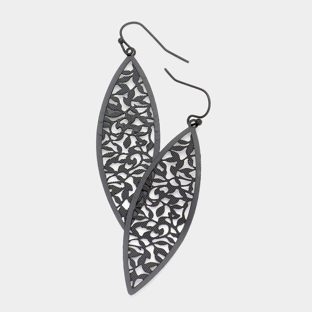 Brass Metal Cutout Detailed Marquise Dangle Earrings