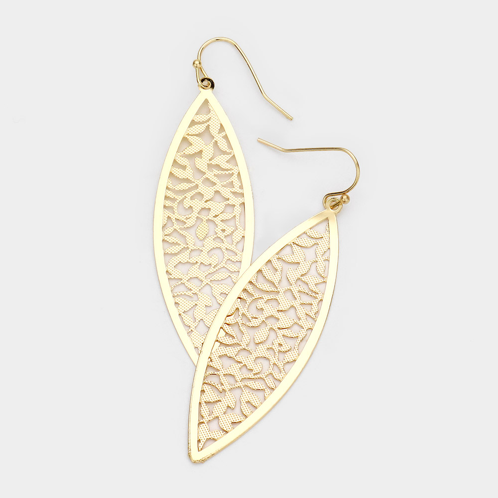 Brass Metal Cutout Detailed Marquise Dangle Earrings