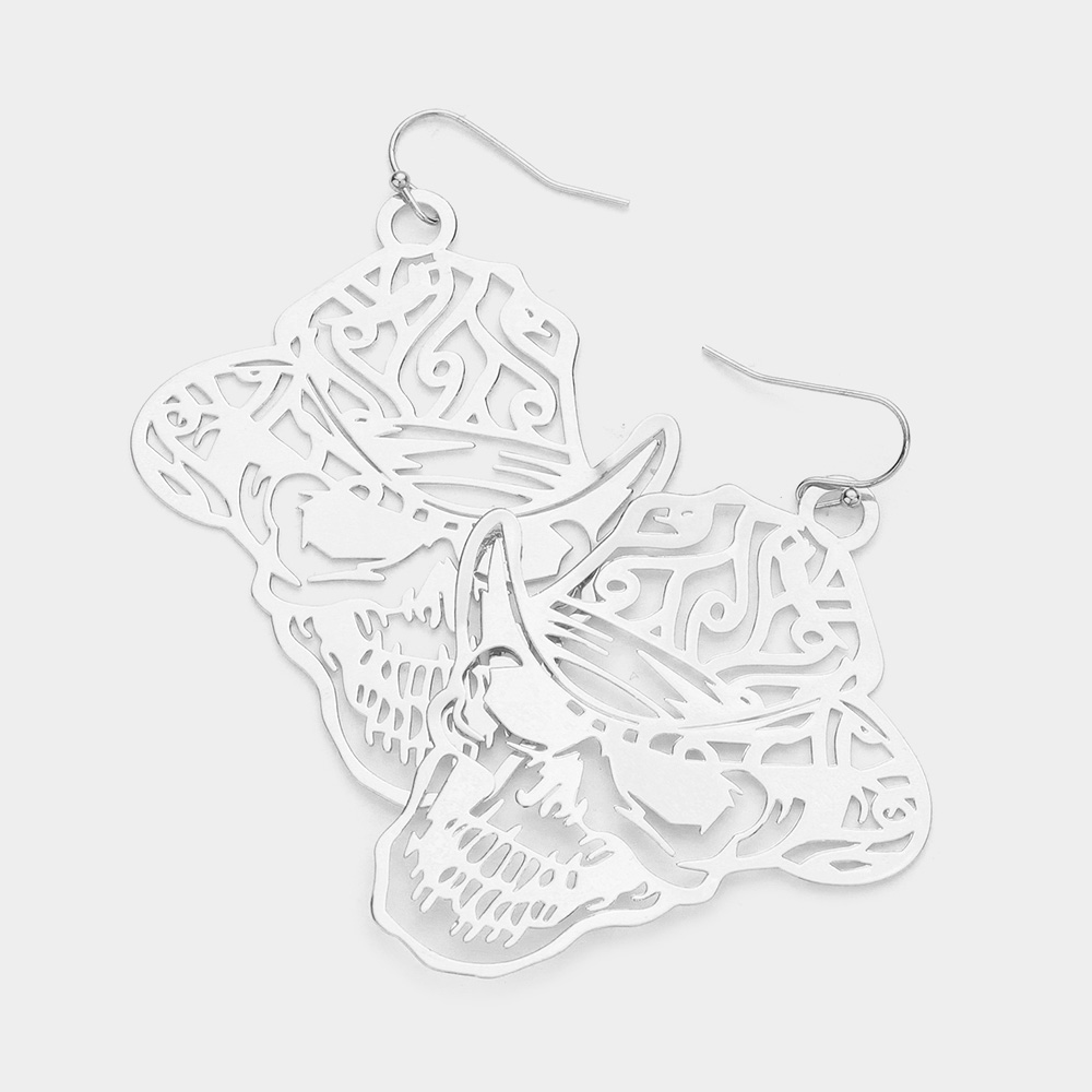 Brass Metal Cutout Skull Dangle Earrings Brass Metal Cutout Skull Dangle Earrings