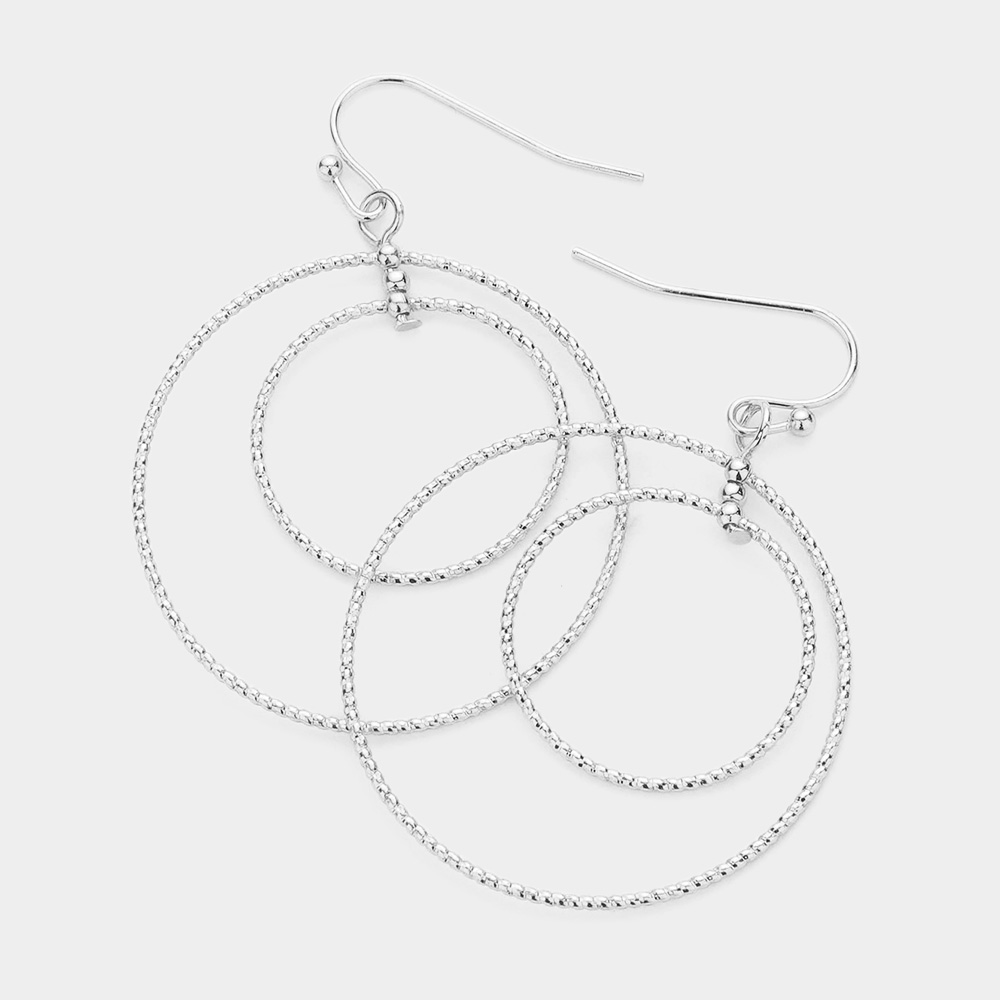 Brass Metal Double Open Circle Dangle Earrings