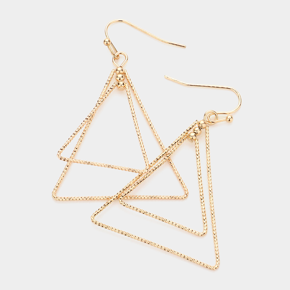 Brass Metal Double Open Triangle Dangle Earrings