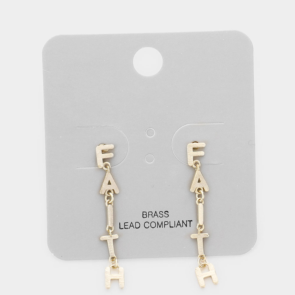 Brass Metal FAITH Link Earrings