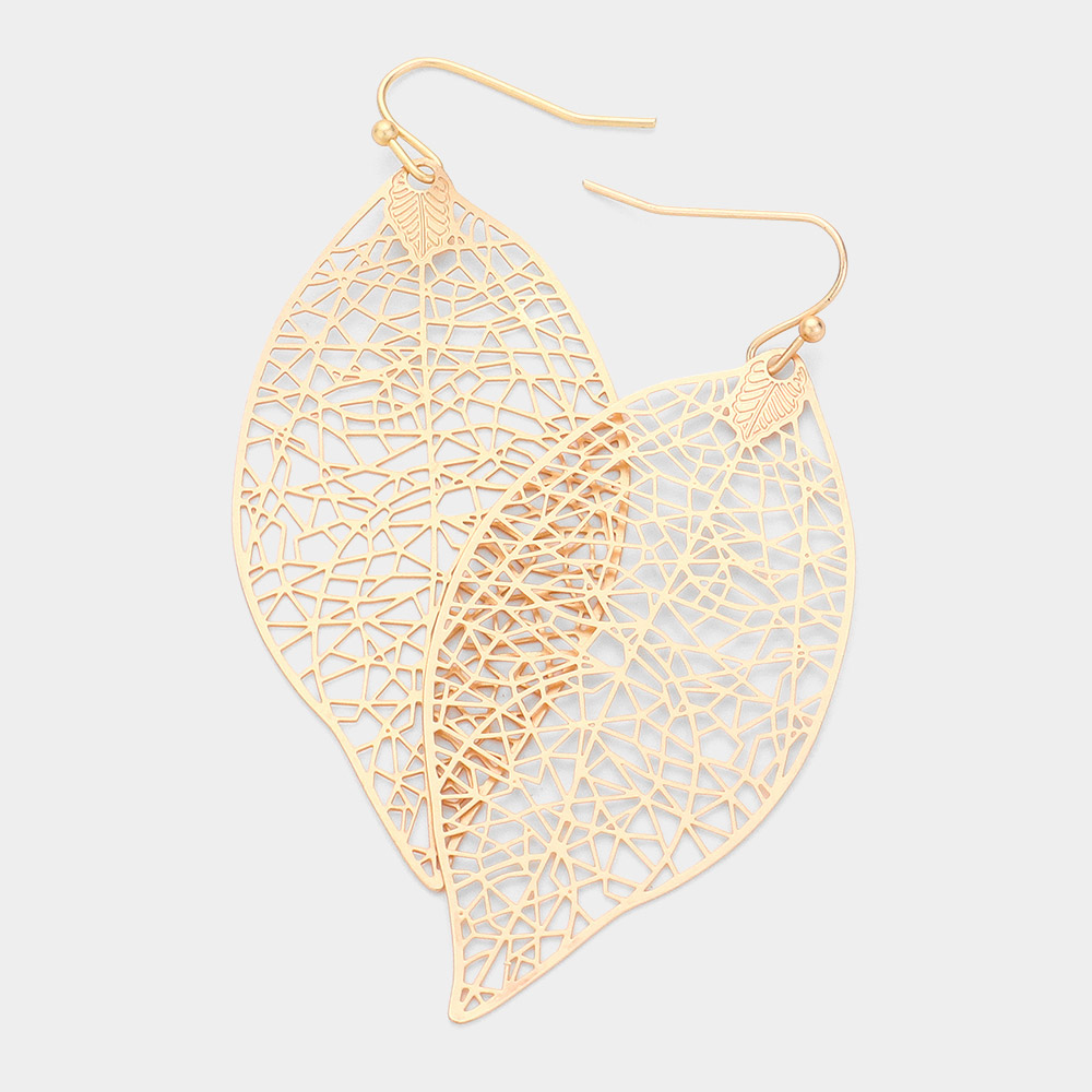 Filigree Leaf Cluster Silhouette Drop Earrings