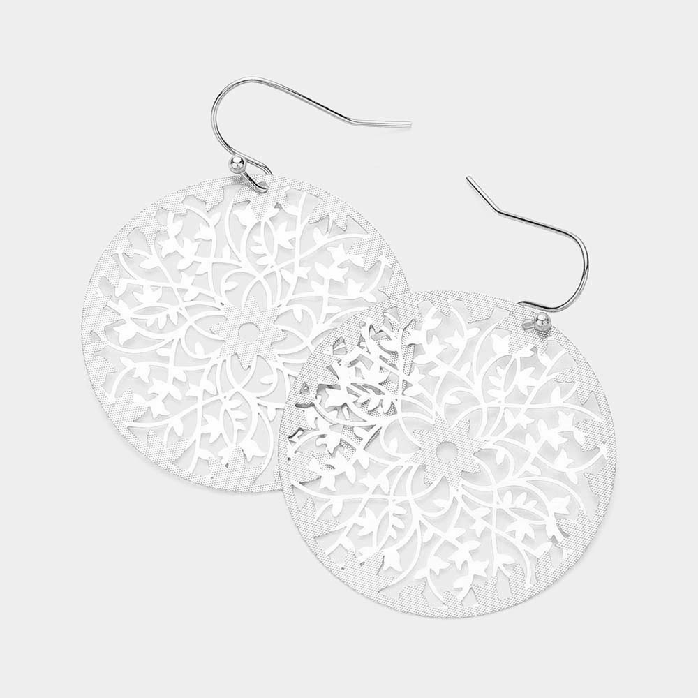 Triple Round Brass Metal Filigree Link Dropdown Dangle Earrings
