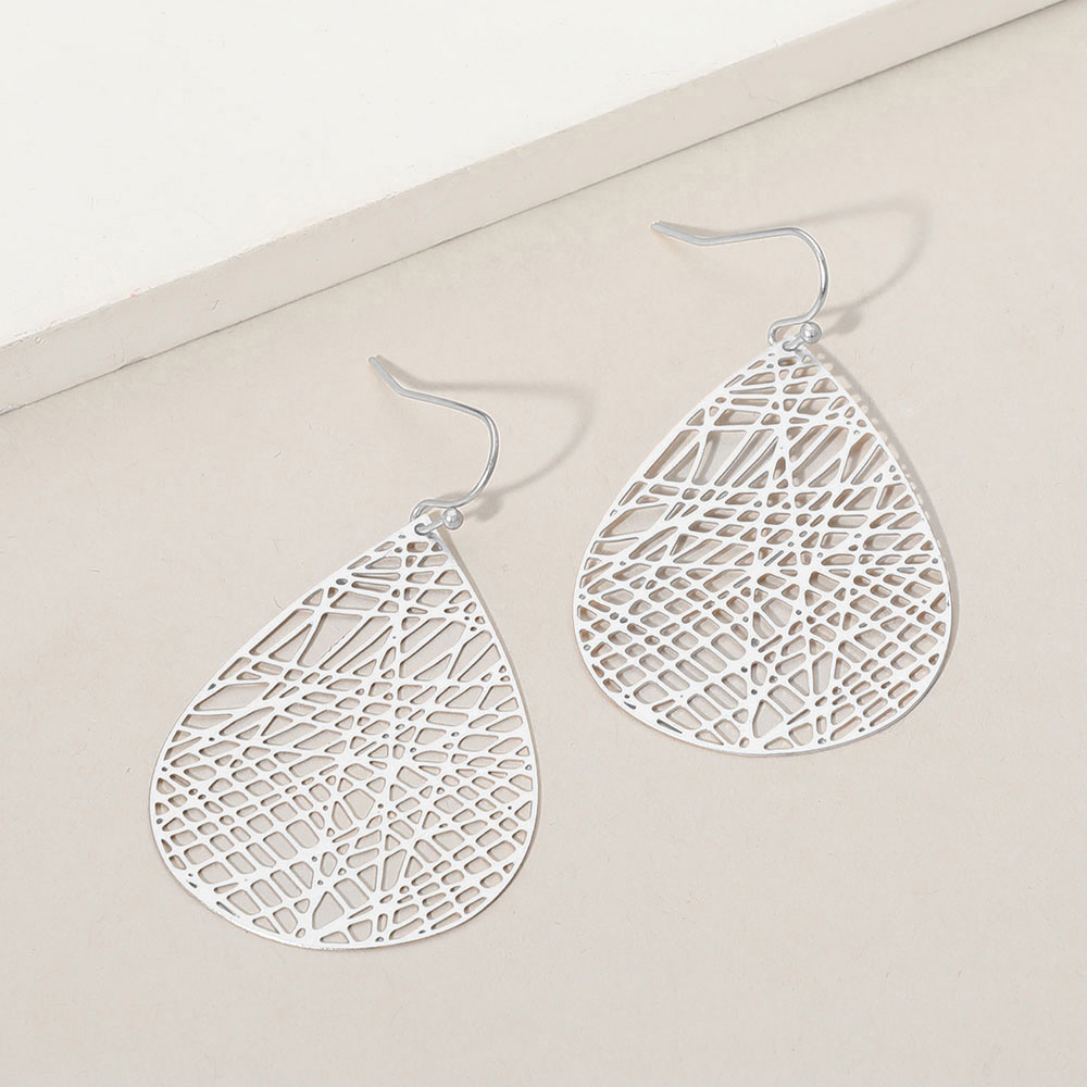 Brass Matte Metal Filigree Teardrop Dangle Earrings