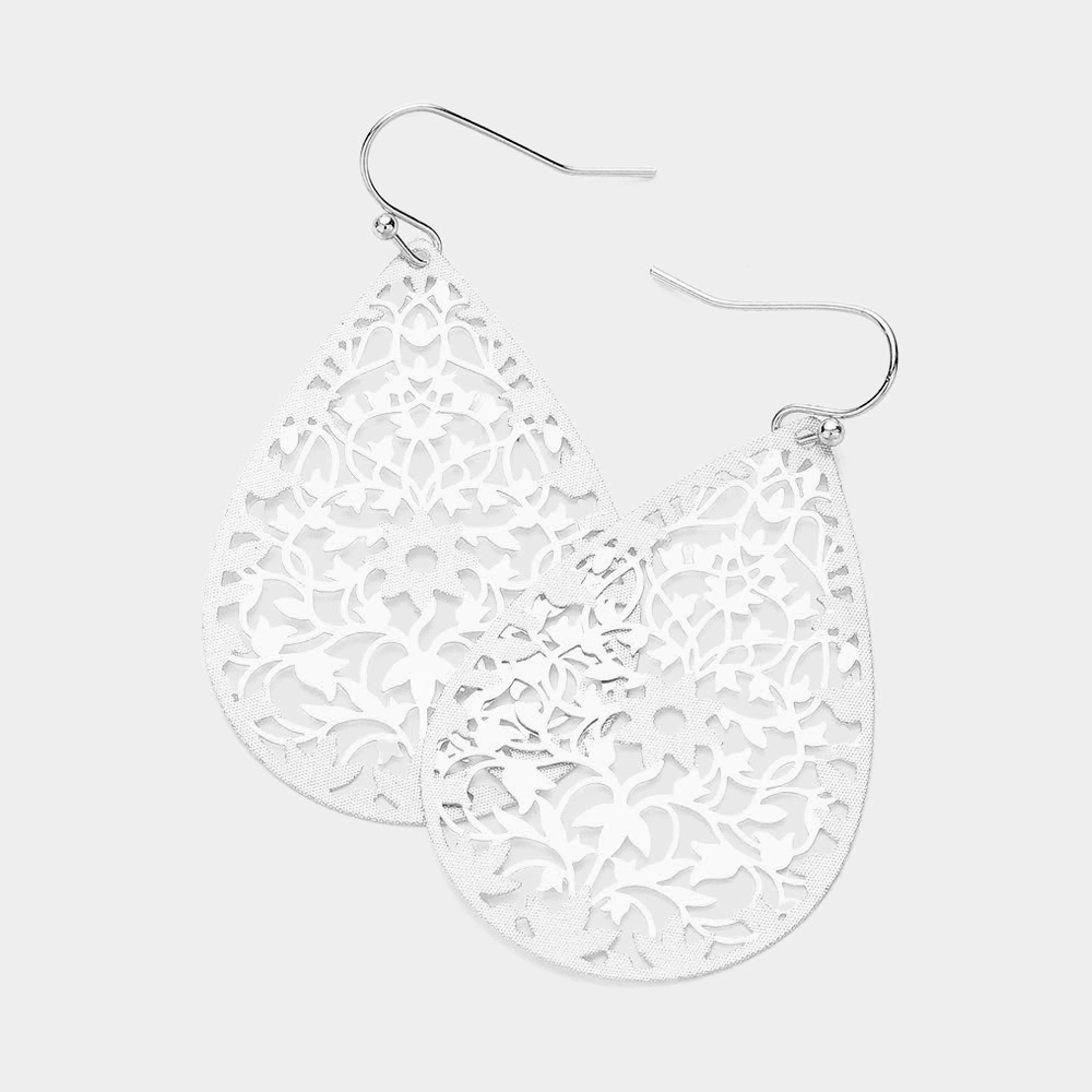 Enamel Point Metal Flower Open Teardrop Dangle Earrings