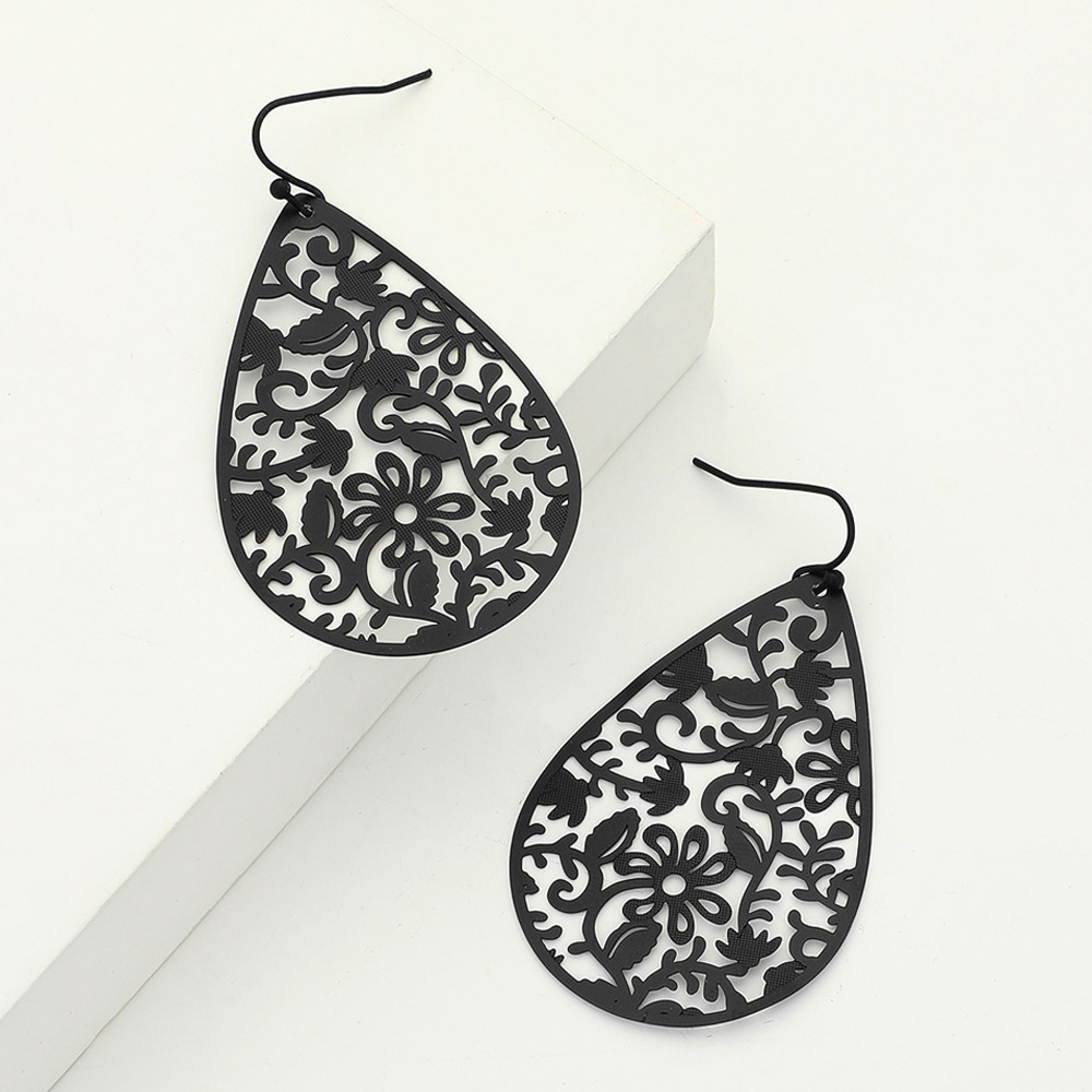 Filigree Metal Teardrop Link Layered Dangle Earrings