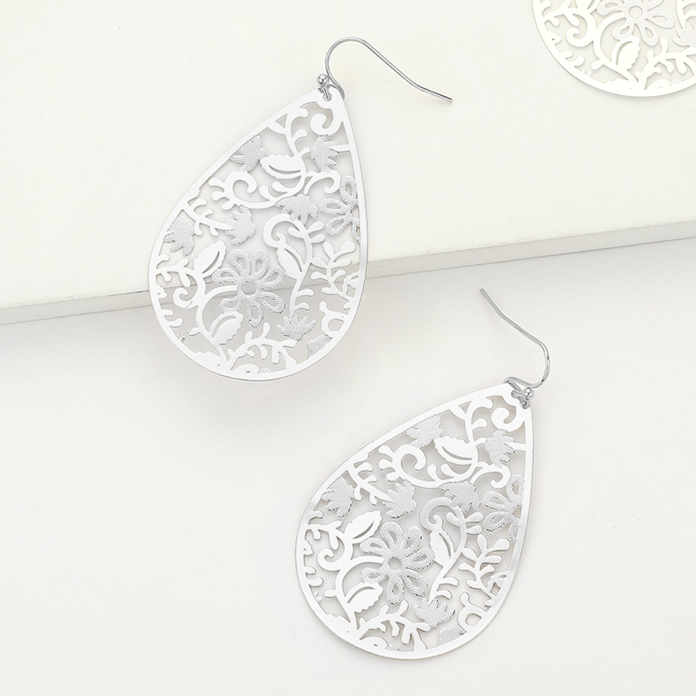 Metal Pin Catch Hoop Wood Open Circle Link Dangle Earrings