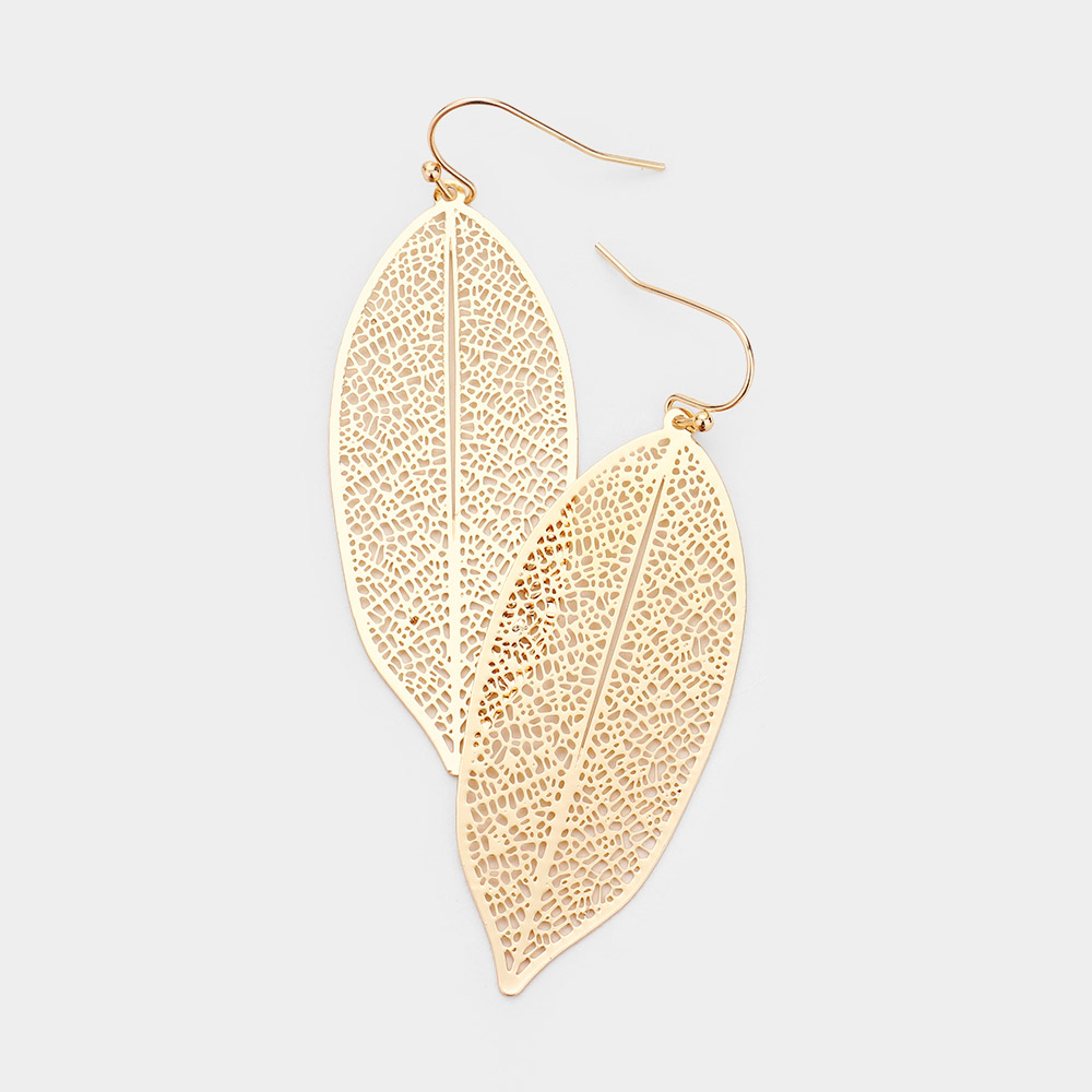 Metal Filigree Leaf Dangle Earrings