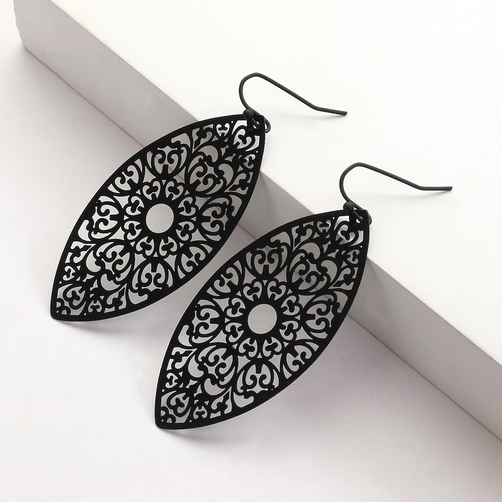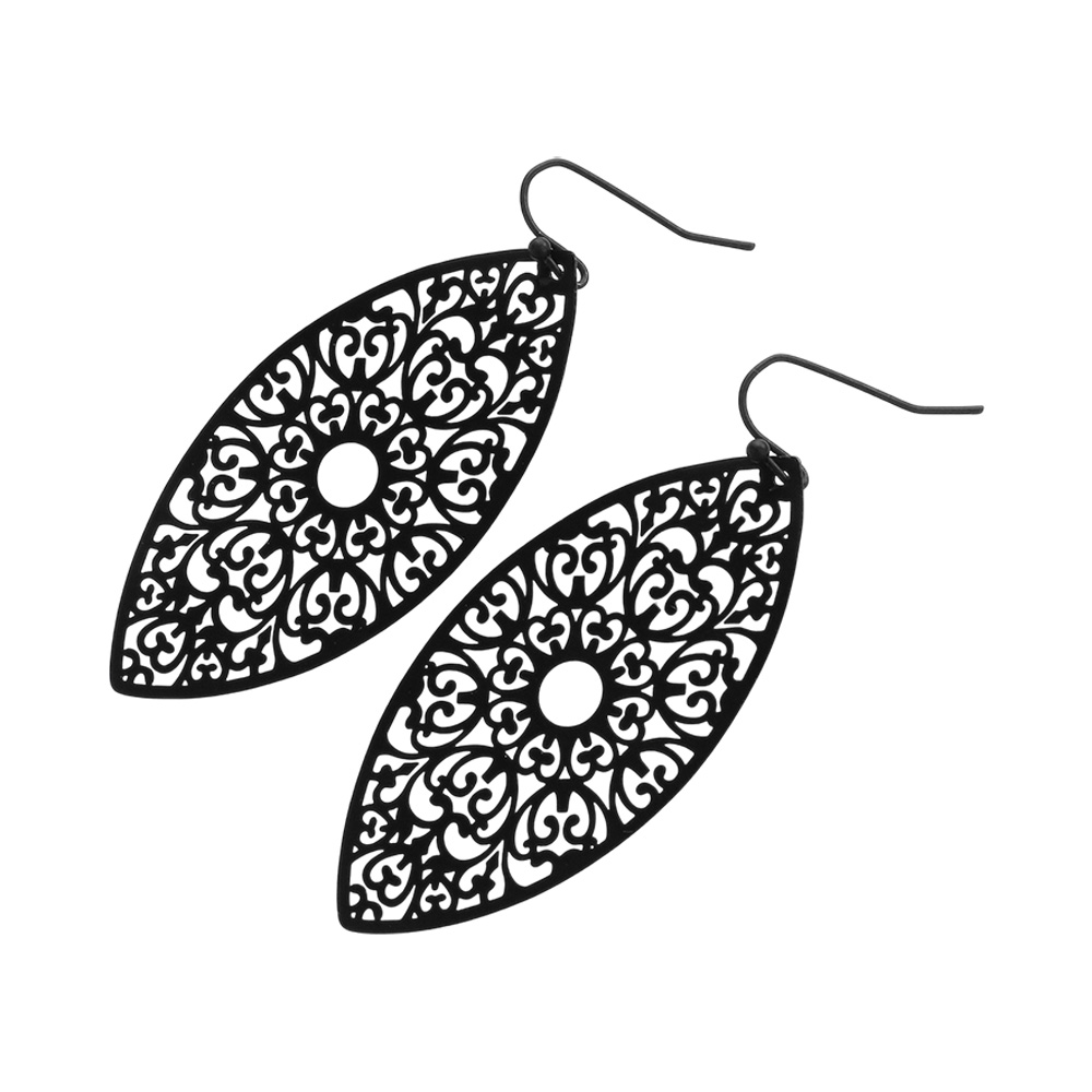 Brass Metal Marquise Filigree Dangle Earrings