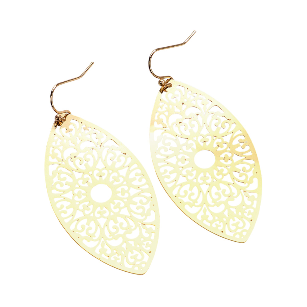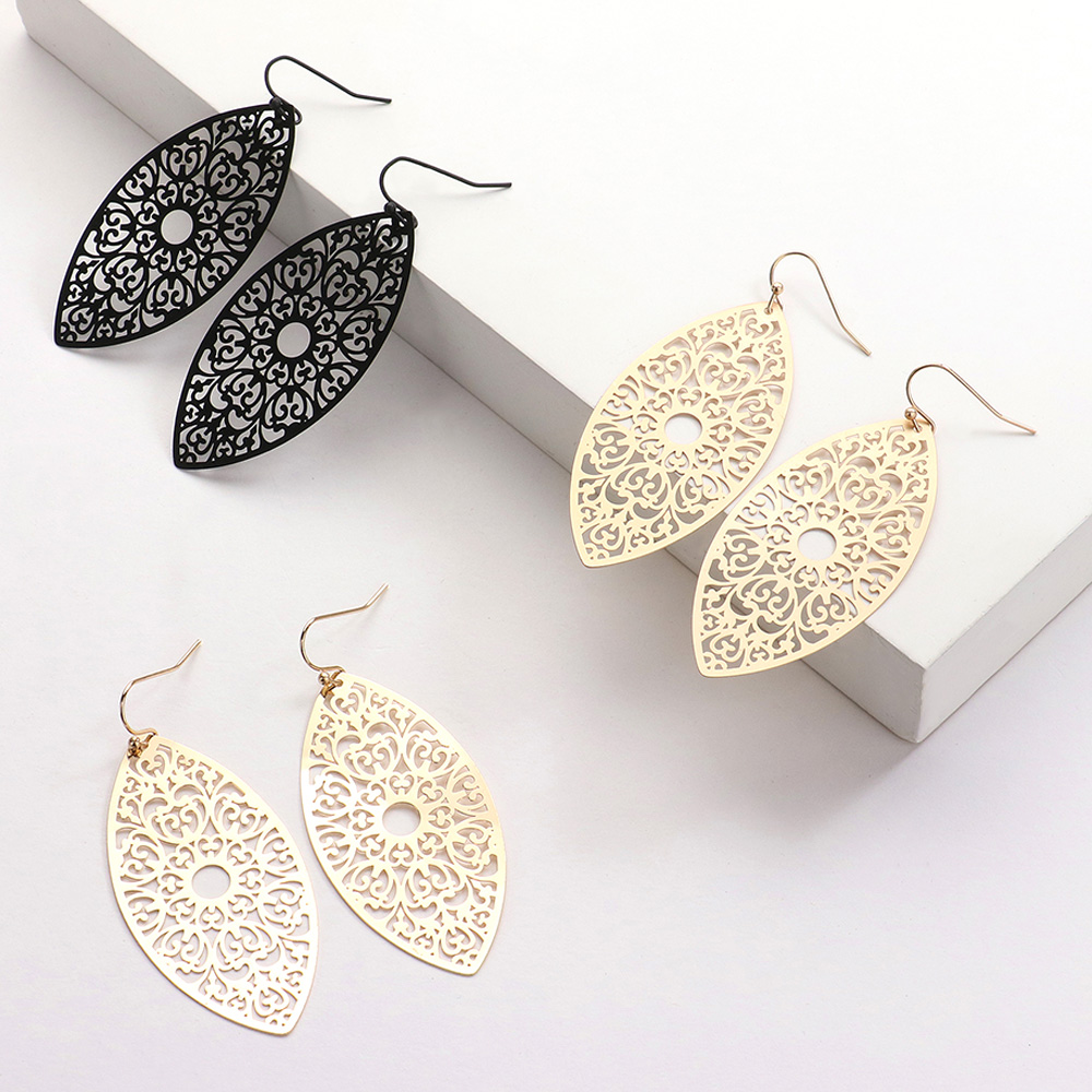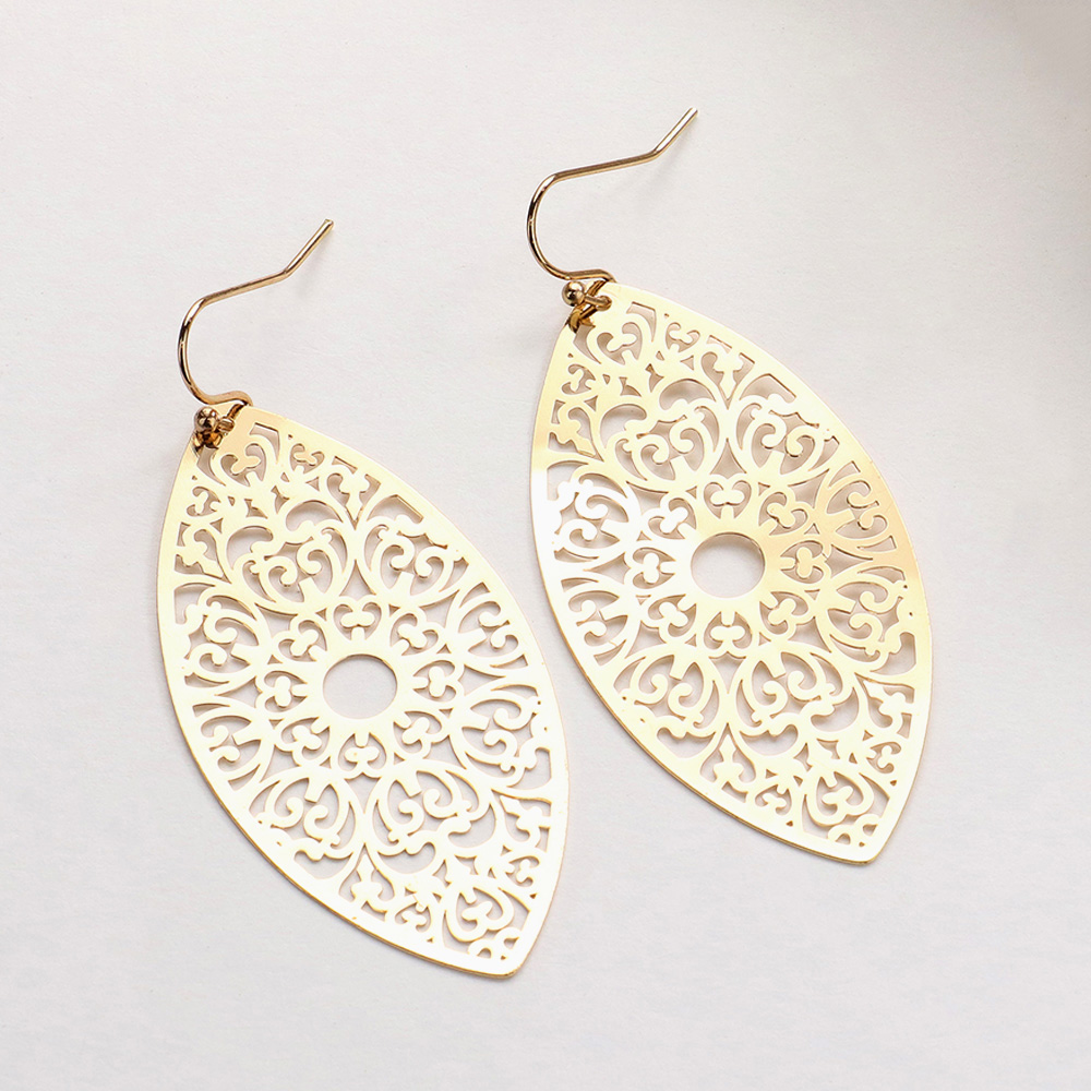 Teardrop Stone Embellished Metal Chandelier Filigree Dangle Earrings