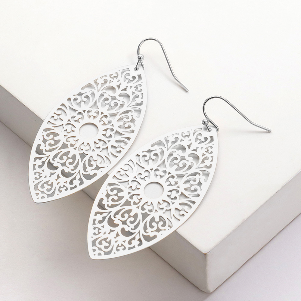 Filigree Metal Teardrop Layered Dropdown Dangle Earrings