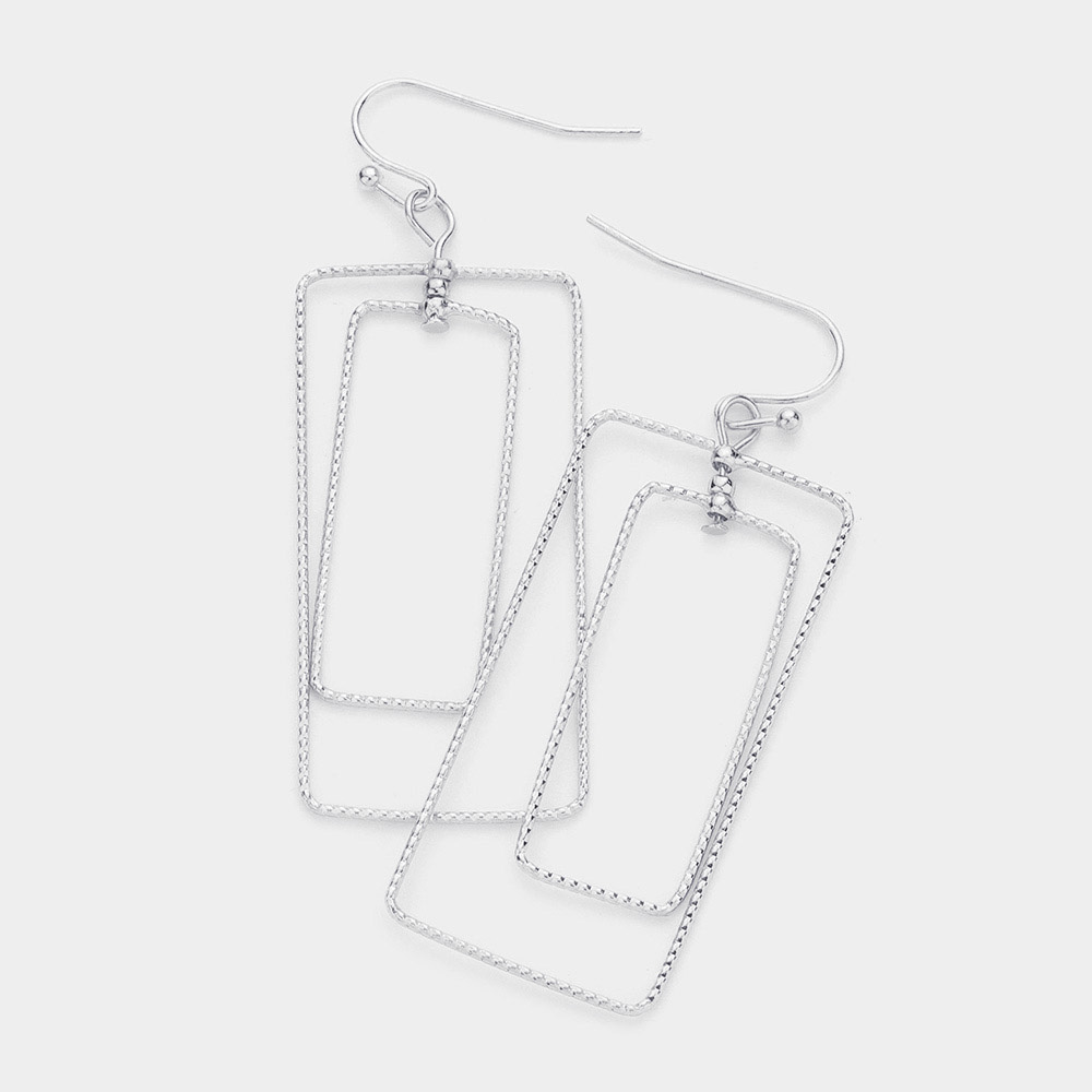 Brass Metal Open Metal Double Rectangle Dangle Earrings