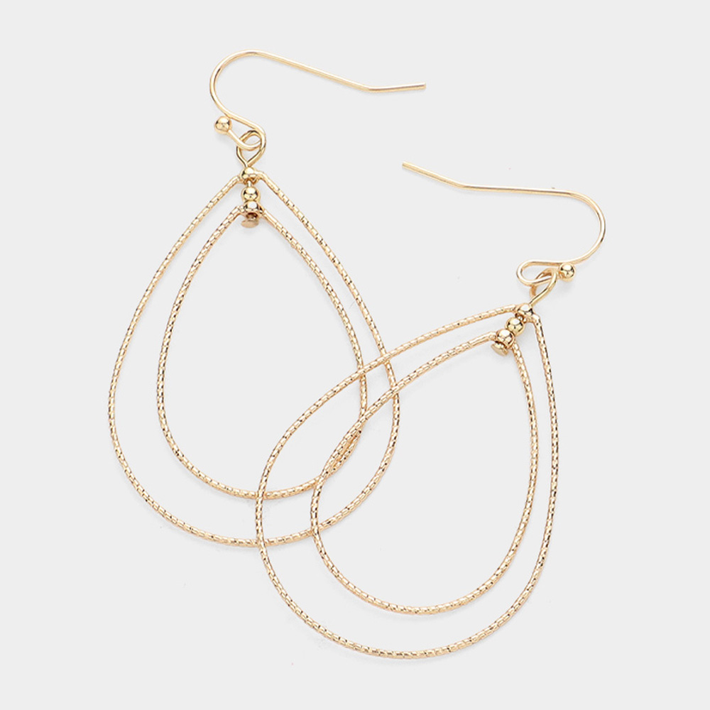 Brass Metal Open Metal Double Teardrop Dangle Earrings