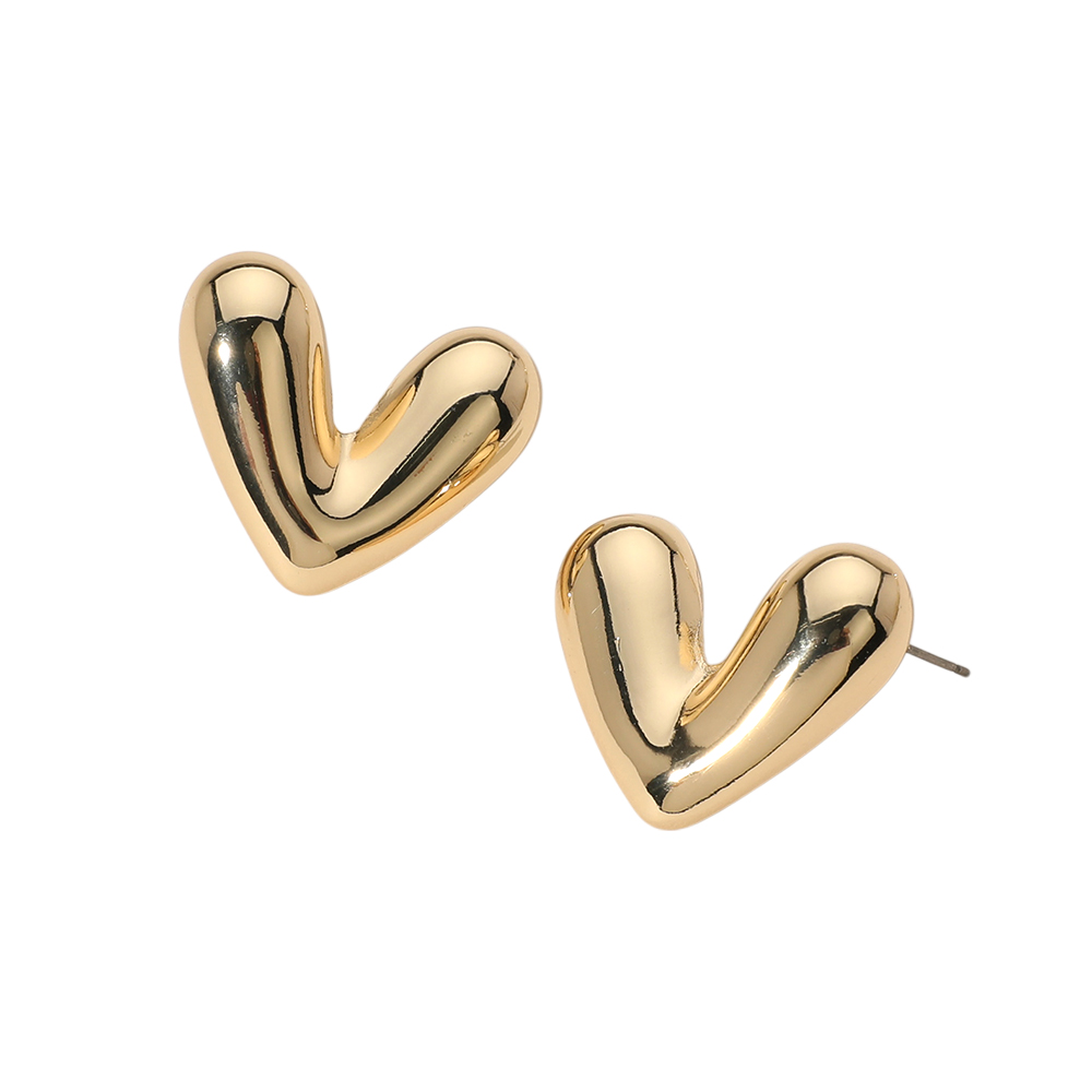 Stainless Steel Puffy Heart Pendant Toggle Necklace