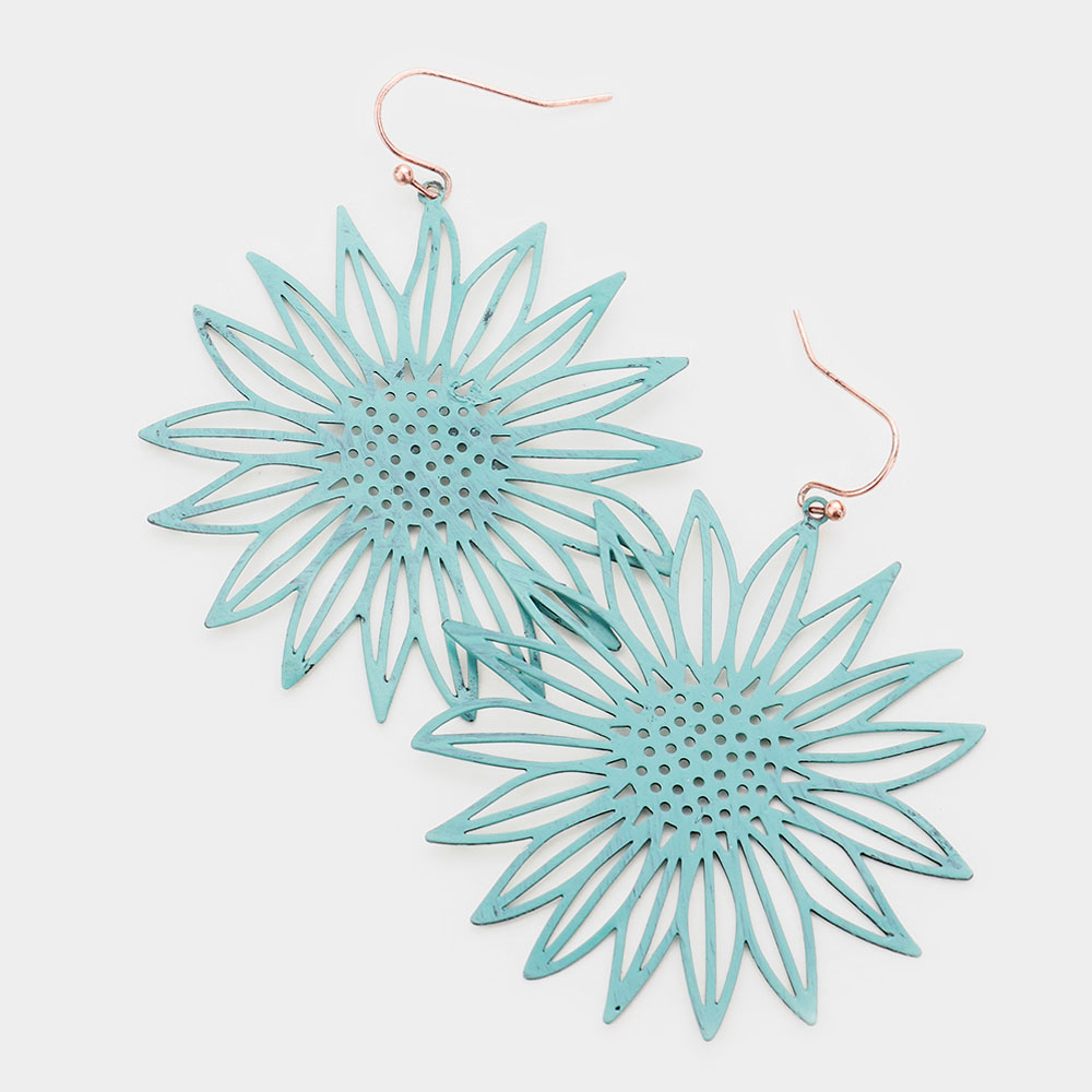 Brass Metal Sunflower Dangle Earrings
